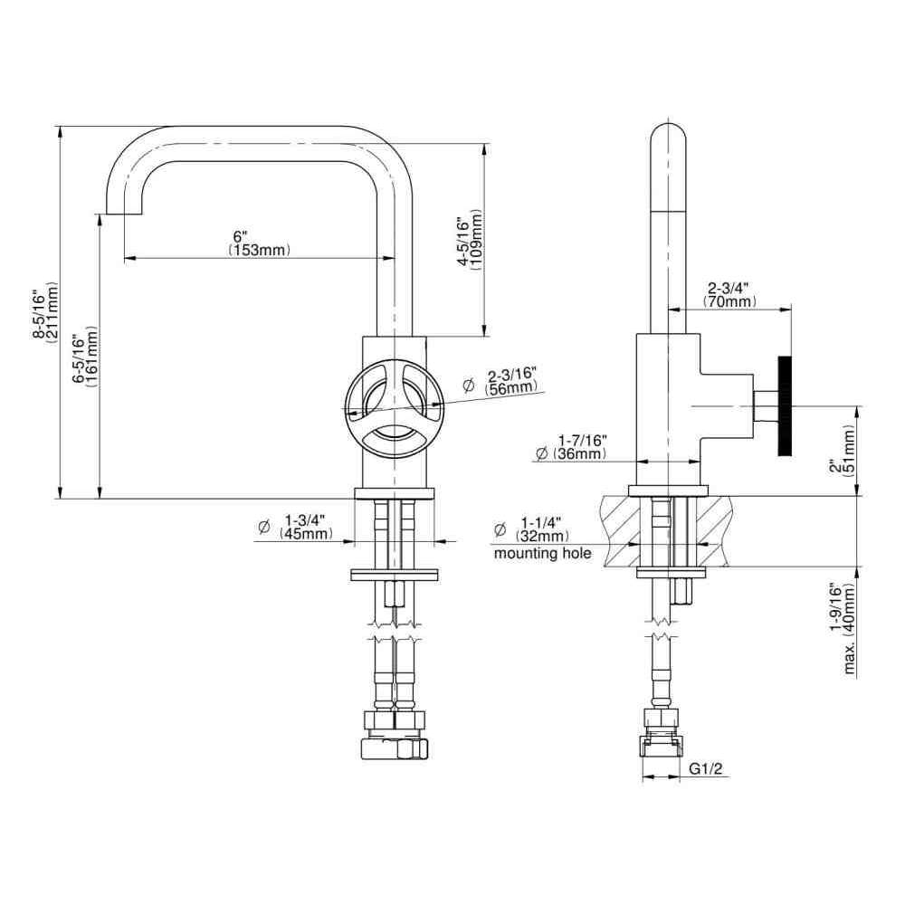 Bateria umywalkowa nablatowa 1-otworowa Graff Harley