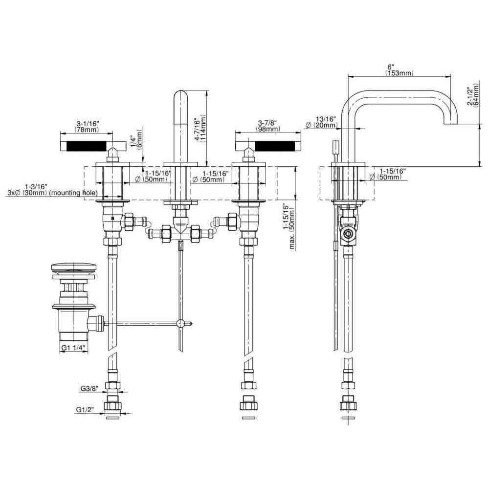 Bateria umywalkowa nablatowa 3-otworowa z odpływem pop-up Graff Harley