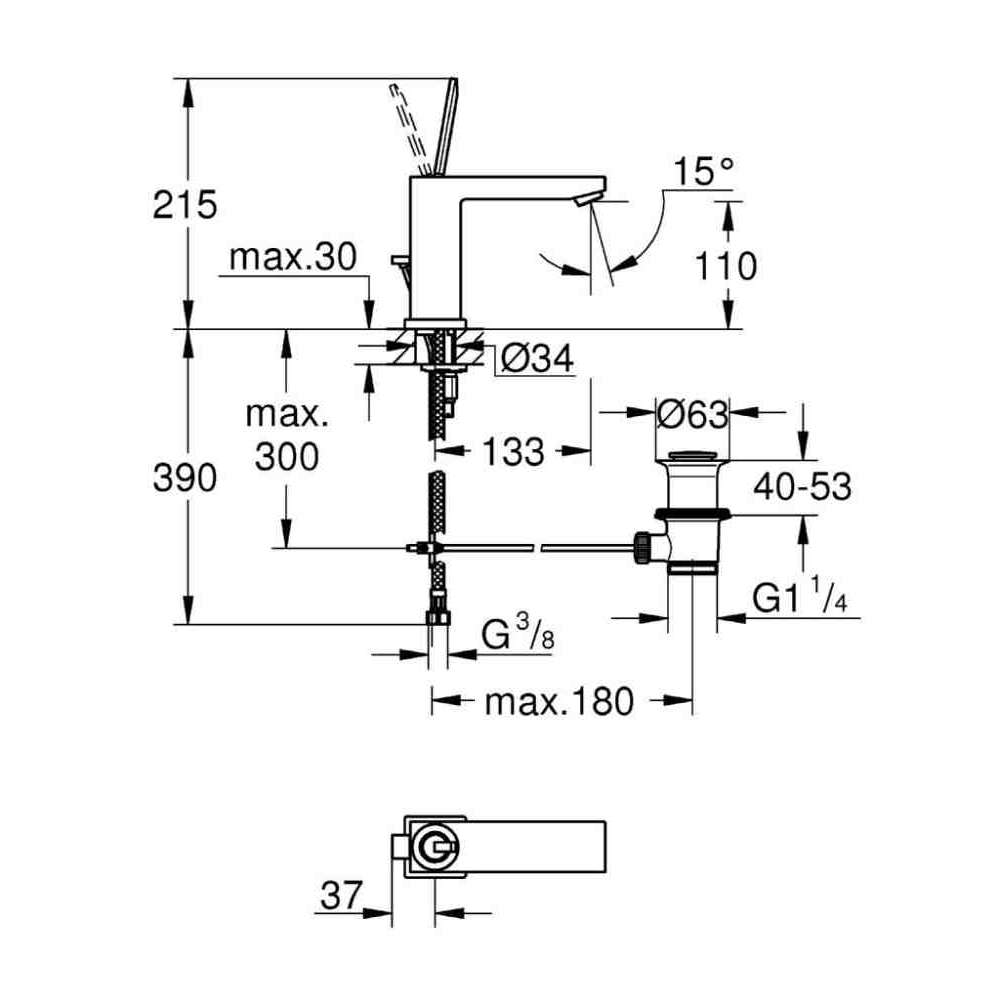 Bateria umywalkowa nablatowa jednouchwytowa Grohe Eurocube Joy SIZE M