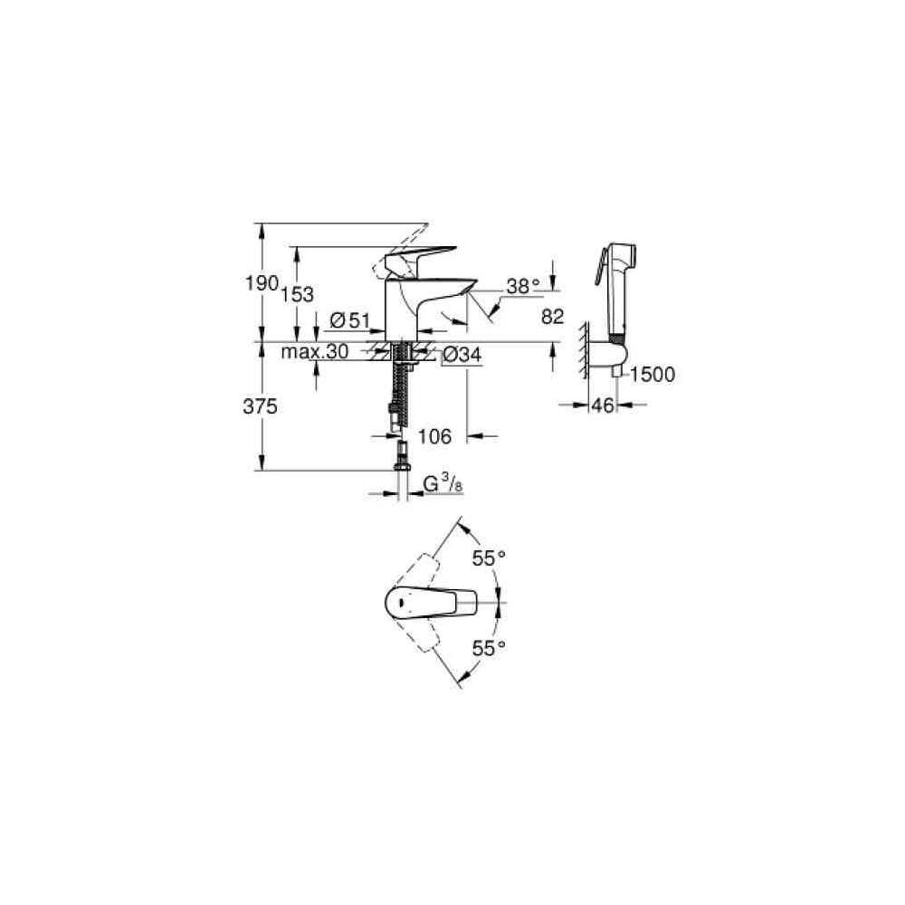 1-otworowa bateria umywalkowa z natryskiem Grohe Start Edge