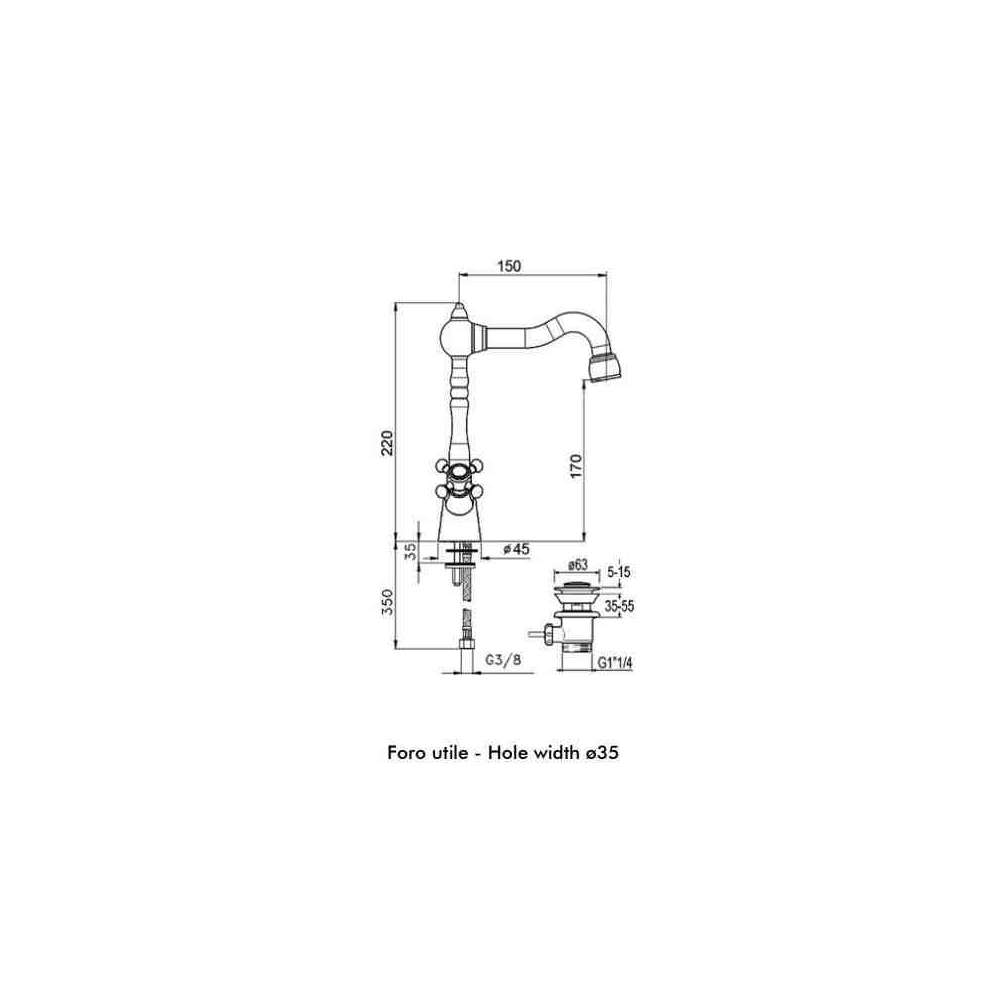 Bateria umywalkowa nablatowa z perlatorem Guglielmi Classica