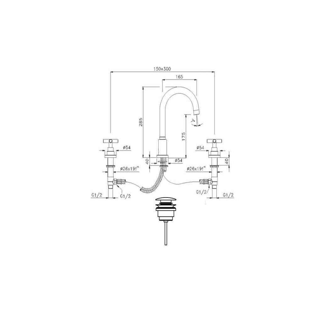Bateria umywalkowa 3-otworowa z perlatorem Guglielmi Vera
