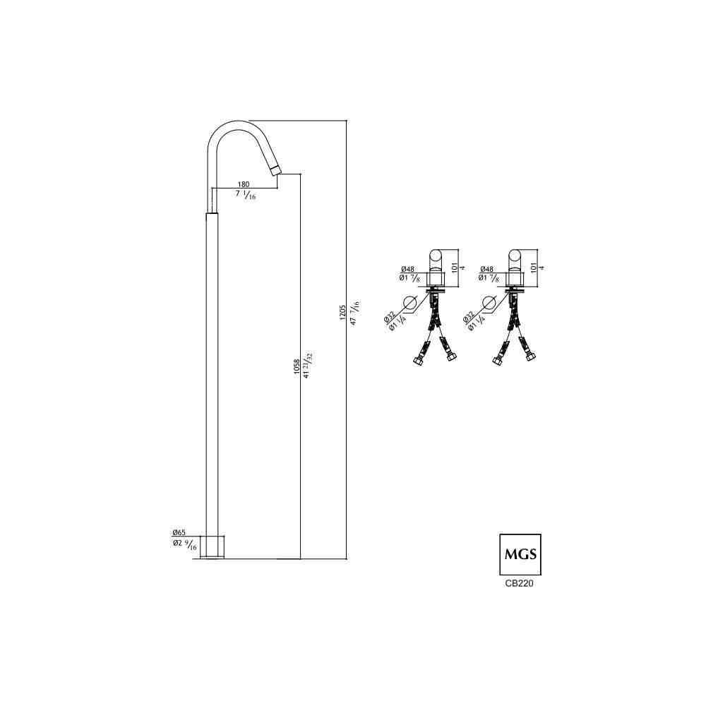 Bateria umywalkowa stojąca, stal nierdzewna MGS CB220