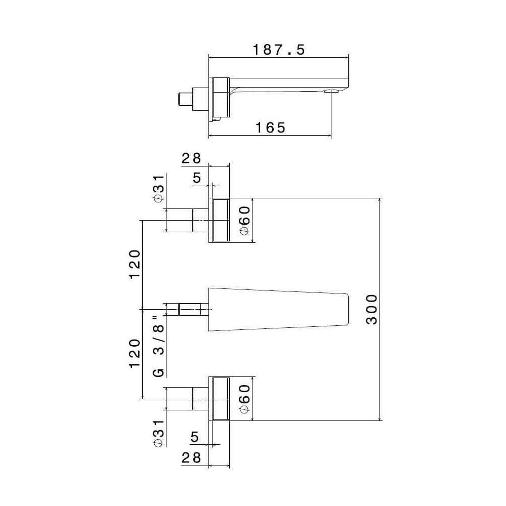Bateria umywalkowa ścienna 3-otworowa, bez odpływu Newform Park Limited Edition