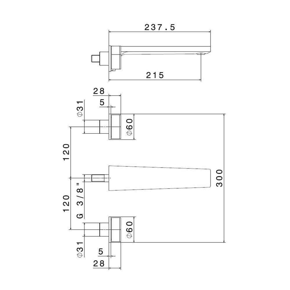 Bateria umywalkowa ścienna 3-otworowa, bez odpływu Newform Park Limited Edition
