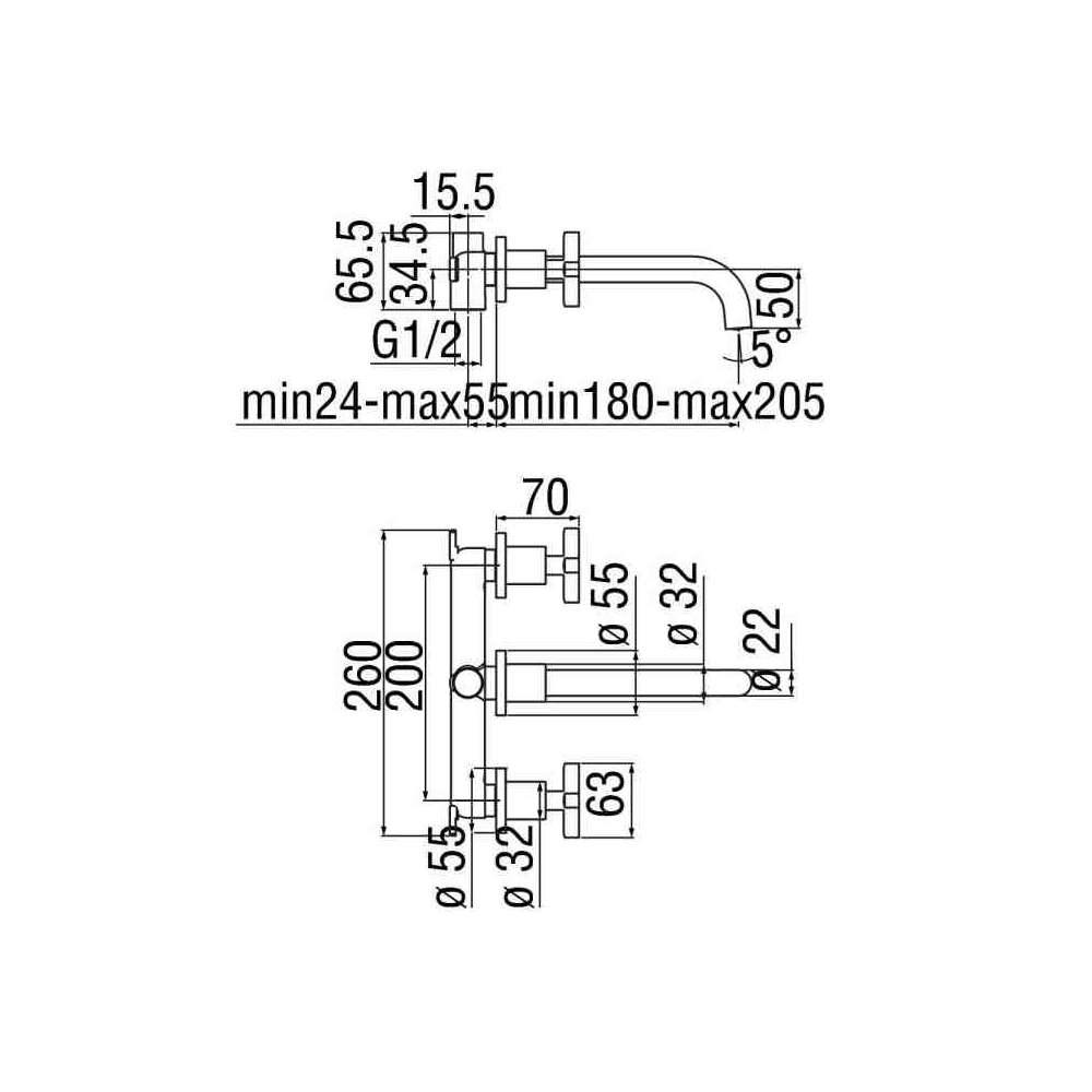 3-otworowa bateria umywalkowa ścienna z pojedynczymi rozetami Nobili Rubinetterie Lira