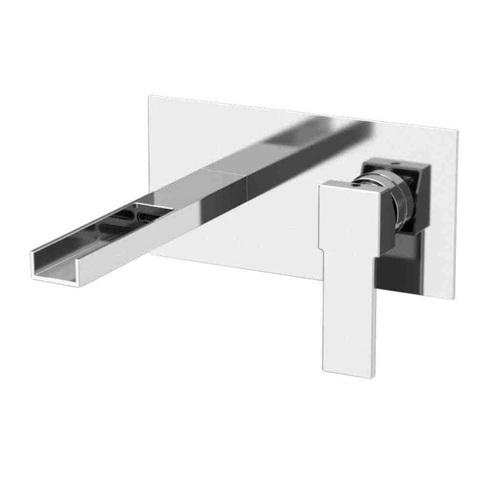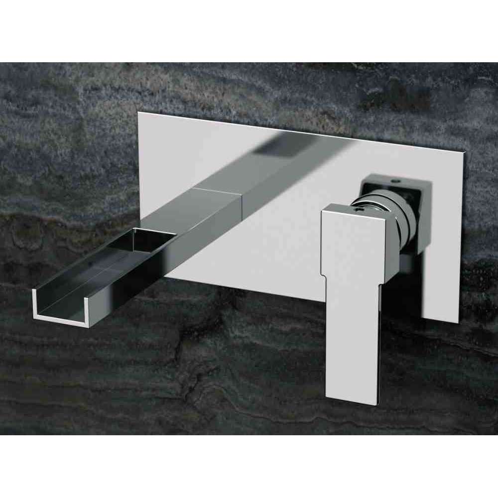 Bateria umywalkowa ścienna z płytką Remer Rubinetterie Qubika Cascata