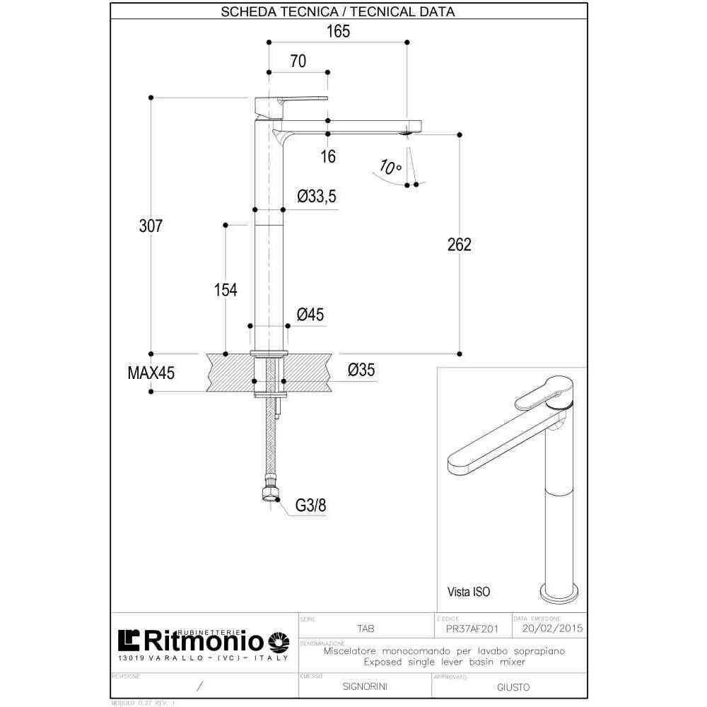 Jednouchwytowa bateria umywalkowa 1-otworowa Ritmonio Tab