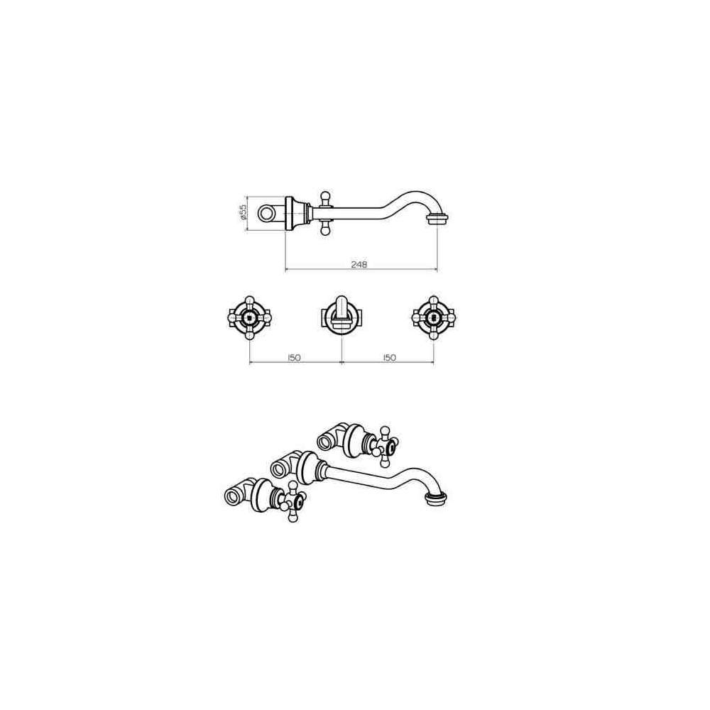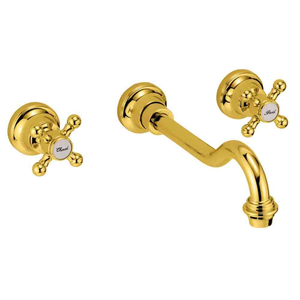 Bateria umywalkowa ścienna 3-otworowa, mosiężna Roberto Crolla Rubinetterie Accademia