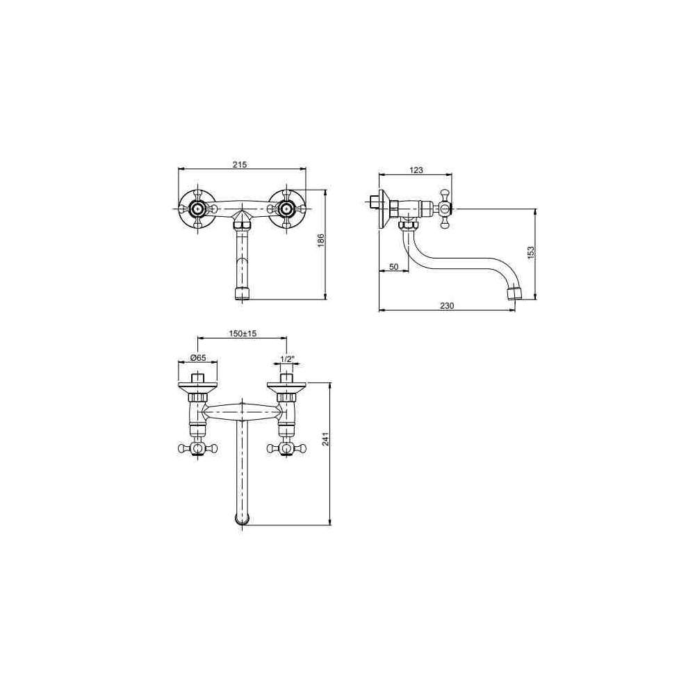 Bateria umywalkowa ścienna, mosiężna Roberto Crolla Rubinetterie Chèrie