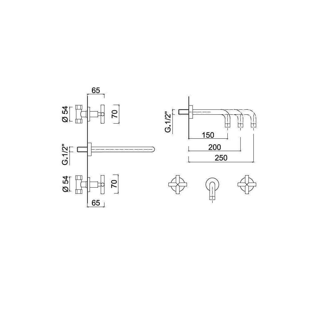 Bateria umywalkowa ścienna 3-otworowa Rubinetteria Giulini G3 - F7620