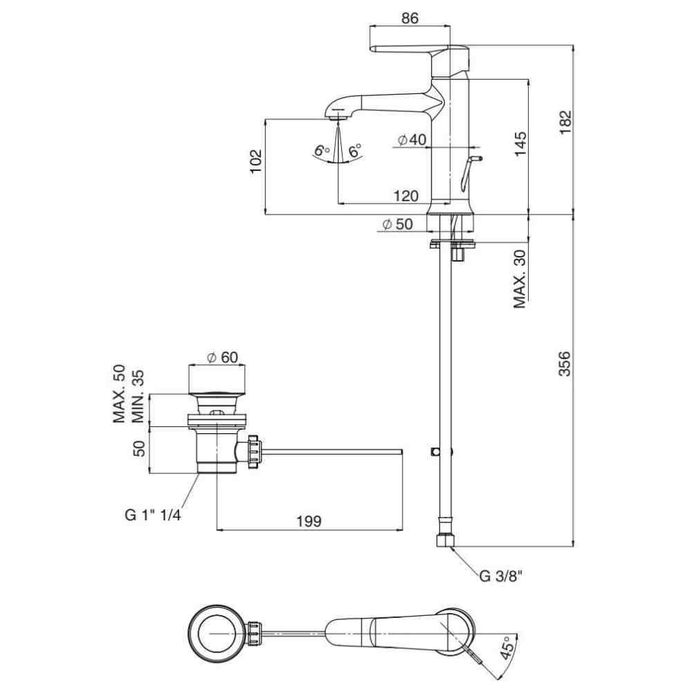 Bateria umywalkowa nablatowa jednouchwytowa mosiężna Rubinetterie Mariani Armonia