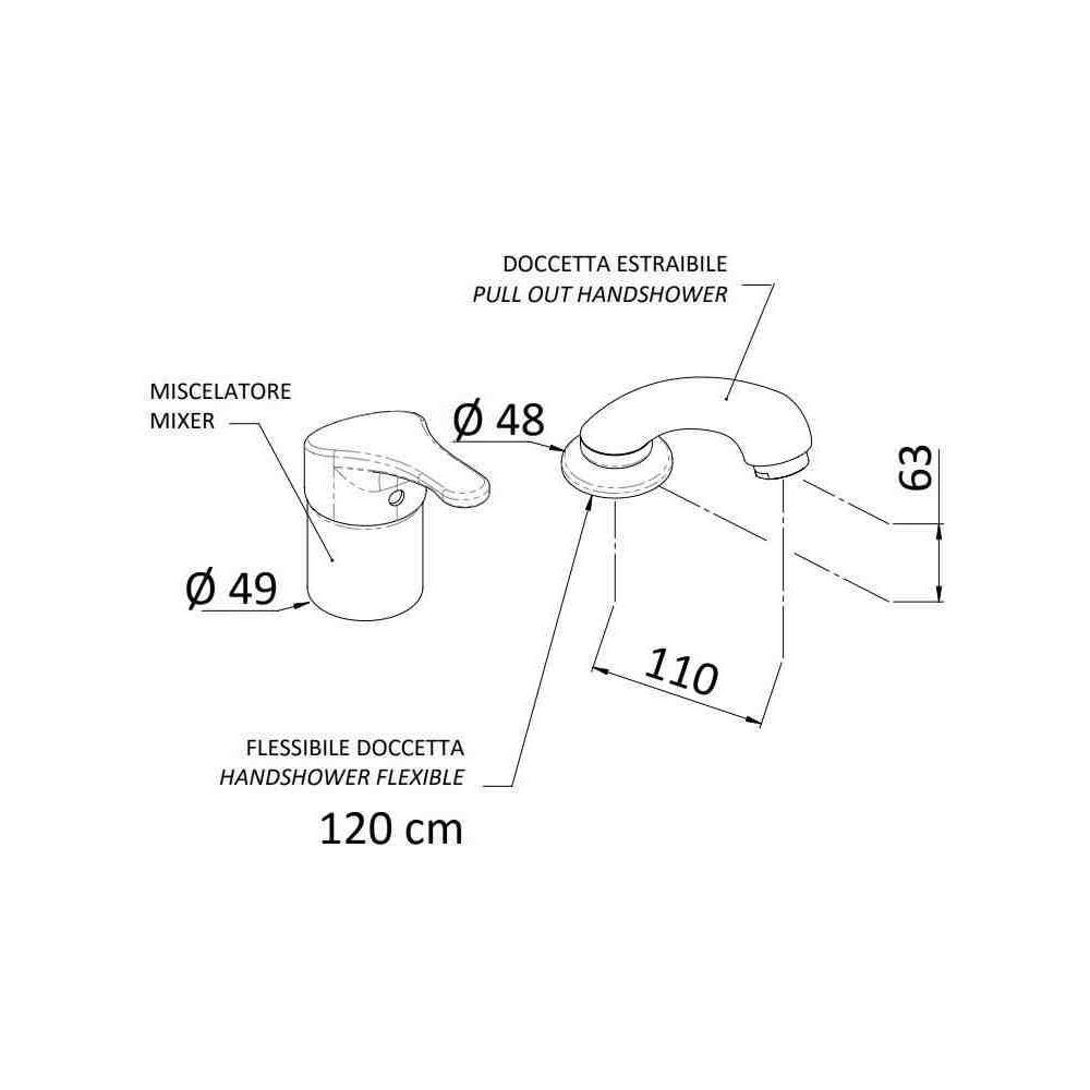 Jednouchwytowa bateria umywalkowa z natryskiem Rubinetterie Mariani Epic 306-E2