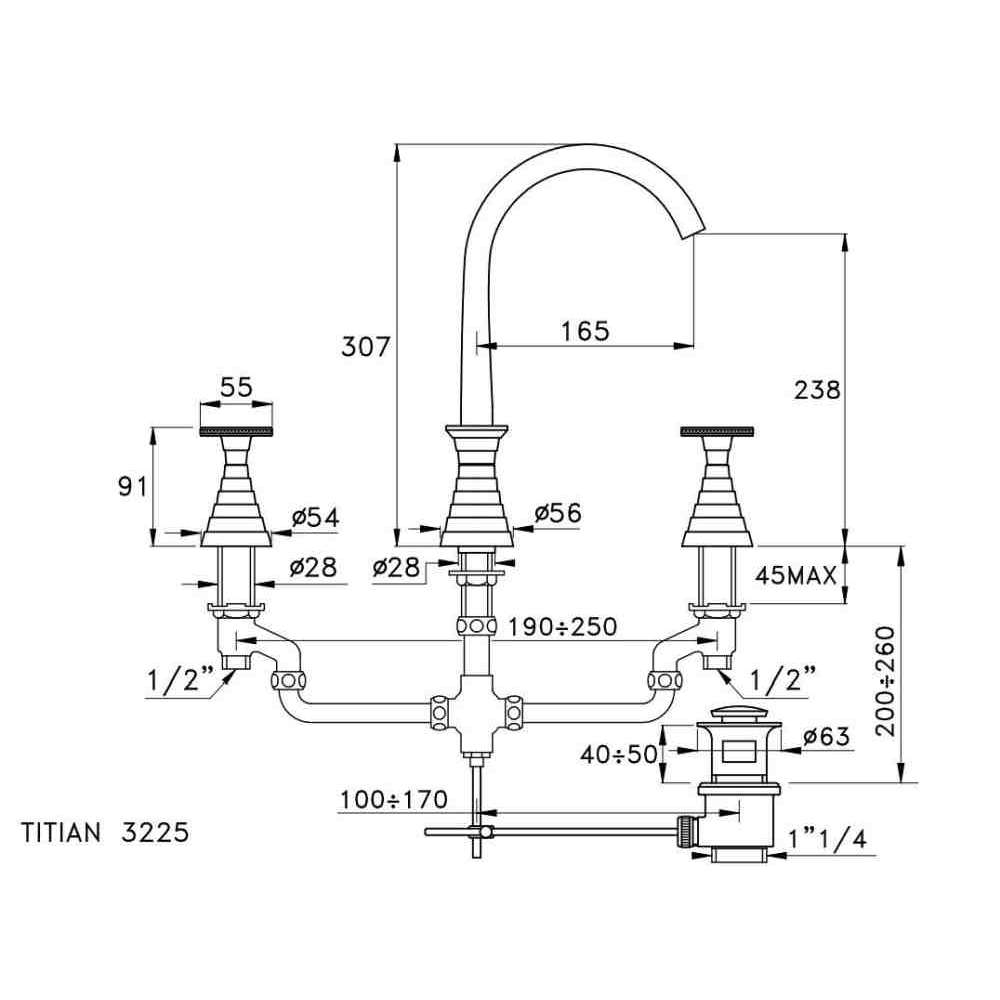 Bateria umywalkowa 3-otworowa Rubinetterie Stella Titian 3225