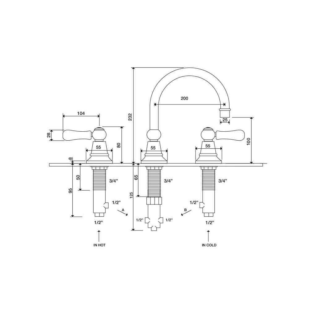 Bateria umywalkowa nablatowa 3-otworowa RVB Flamant Butler