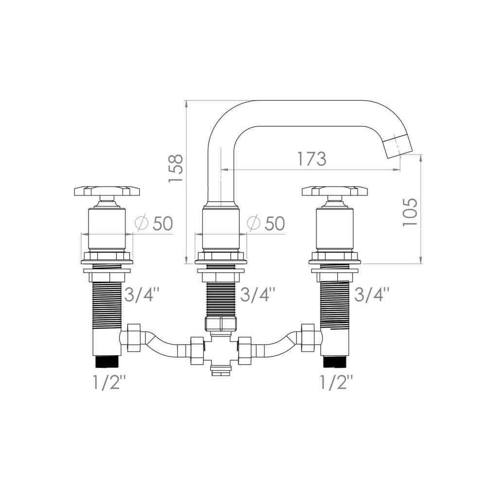 Metalowa bateria umywalkowa nablatowa 3-otworowa RVB Flamant Factory