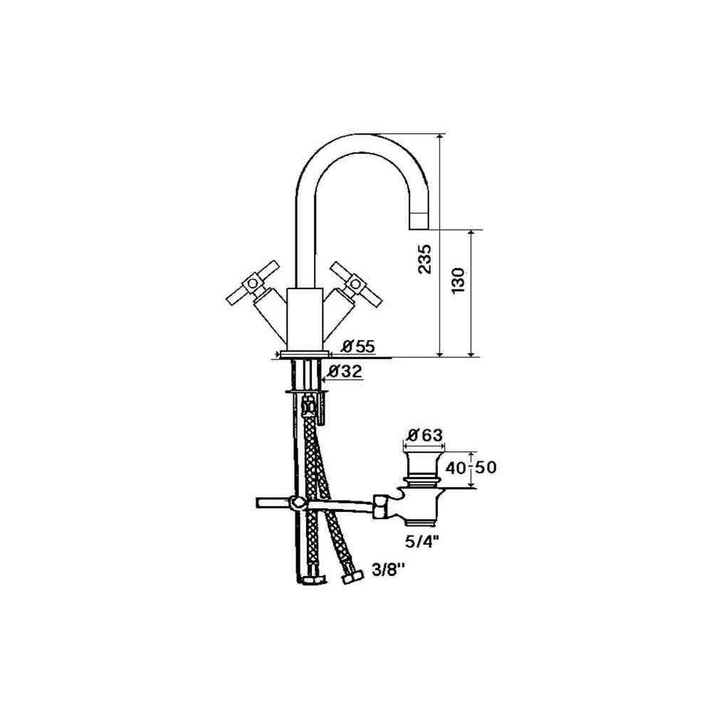 Bateria umywalkowa nablatowa 1-otworowa z automatycznym odpływem RVB Sully