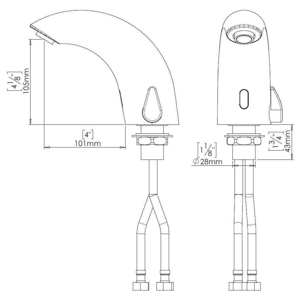 Bezdotykowy kran elektroniczny do instalacji na pokładzie. Aktywowany przez czujnik podczerwieni. Jednoczęściowa konstrukcja z litego mosiądzu. Do ciepłej i zimnej wody zawiera mieszacz do regulacji temperatury wody. Filtry w zestawie. Zawiera wskaźnik niskiego poziomu baterii. Zatrzaskowy zawór elektromagnetyczny znajduje się nad pokładem wewnątrz produktu dla dodatkowej ochrony przed aktami wandalizmu. Jednoczęściowa konstrukcja z litego mosiądzu. Regulowane ustawienia za pomocą pilota: zasięg czujnika, czas zabezpieczenia, opóźnienie wejścia, opóźnienie wyjścia, włączanie-wyłączanie i przywracanie ustawień fabrycznych.