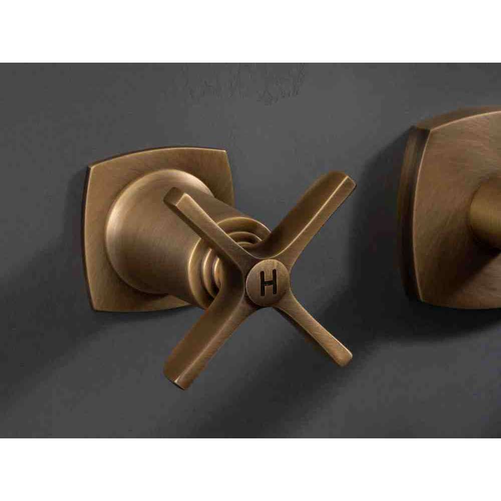 Dostępne z dwoma lub trzema otworami, oba z uchwytami typu Crosshead i Lever. Bateria umywalkowa naścienna Highline jest wykończona postarzanym mosiądzem przy użyciu ściśle tajnej techniki opracowanej przez naszych rzemieślników, która prezentuje naturalnie postarzaną patynę prosto po wyjęciu z pudełka. Dostępny również w wykończeniu Gunmetal, które zapewnia gładki połysk z nutą ciepła na delikatnych pociągnięciach pędzla.