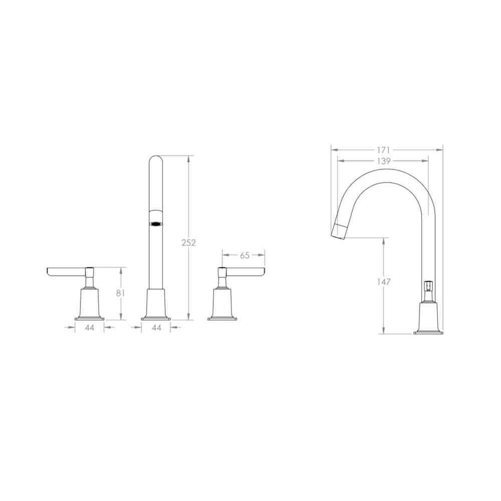 Bateria umywalkowa nablatowa 3-otworowa The Watermark Collection Highline