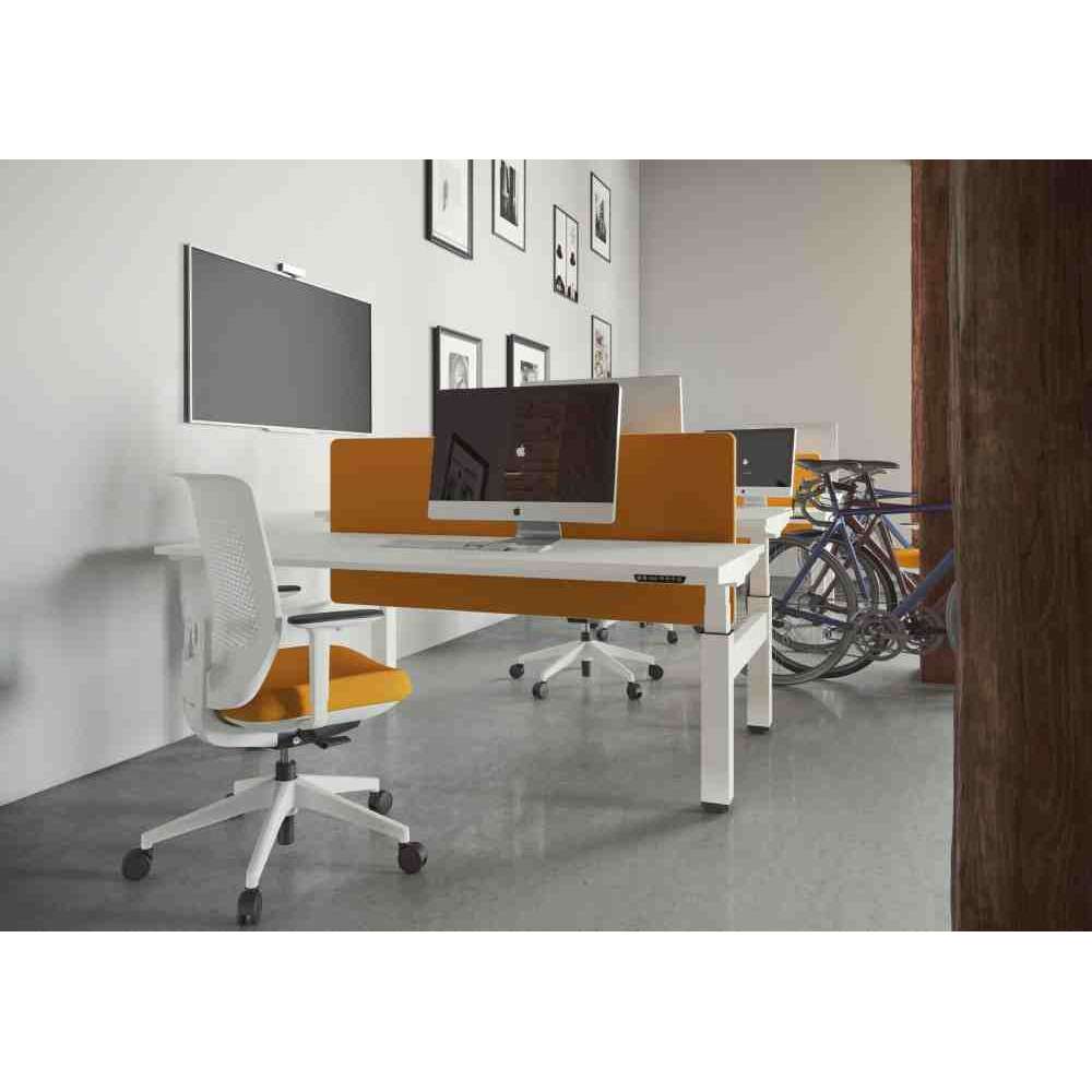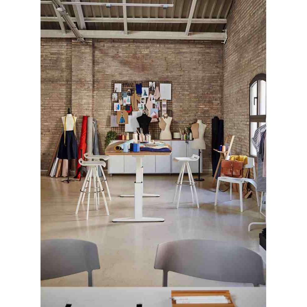 Pojedyncze, podwójne, podłużnie sklejone stoły wzrostowe, które mają wiele wspólnych elementów, takich jak kanały elektryfikacyjne, panele działowe itp. Od pracy indywidualnej po zbiorową mają szczegółową interpretację zgodnie z oczekiwaniami wyimaginowanego zastosowania.” Javier Cuñado opisał nam produkt jako „system trójwymiarowych mebli biurowych, w którym koncepcja konfiguracji daje odpowiedź na szerokie spektrum modeli i środowisk pracy. Ale dodatkowo rozwiązania w zakresie regulacji wysokości uzupełniają trzeci poziom wszechstronności zastosowań”.