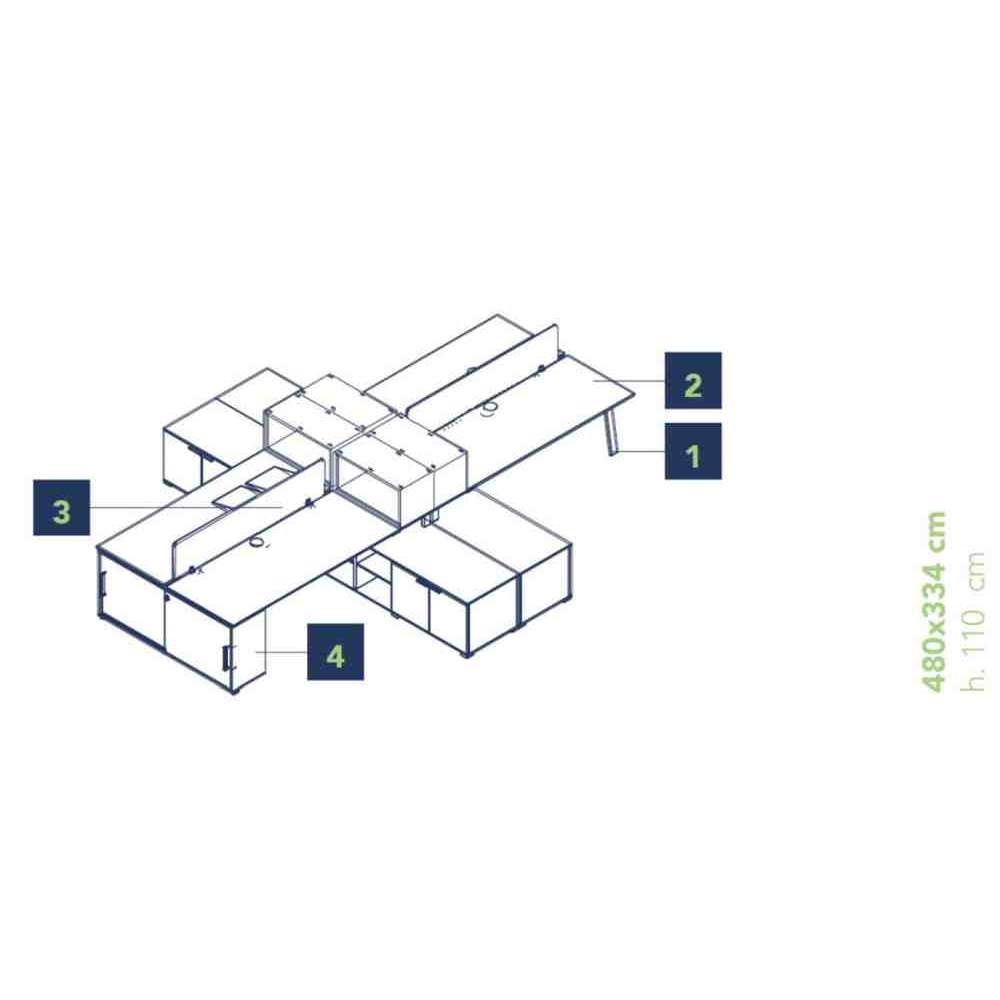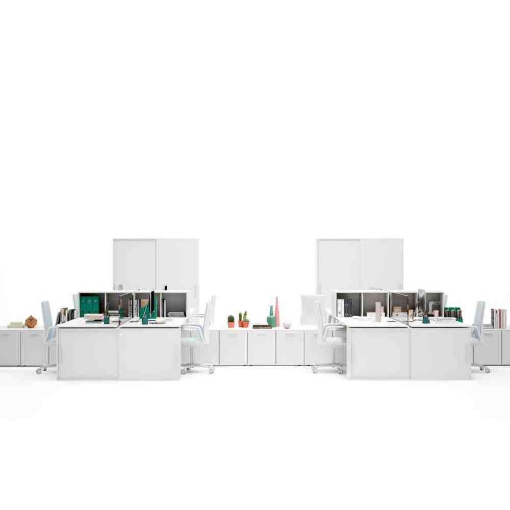 Biurko drewniane wielostanowiskowe z półkami Bralco Take Off
