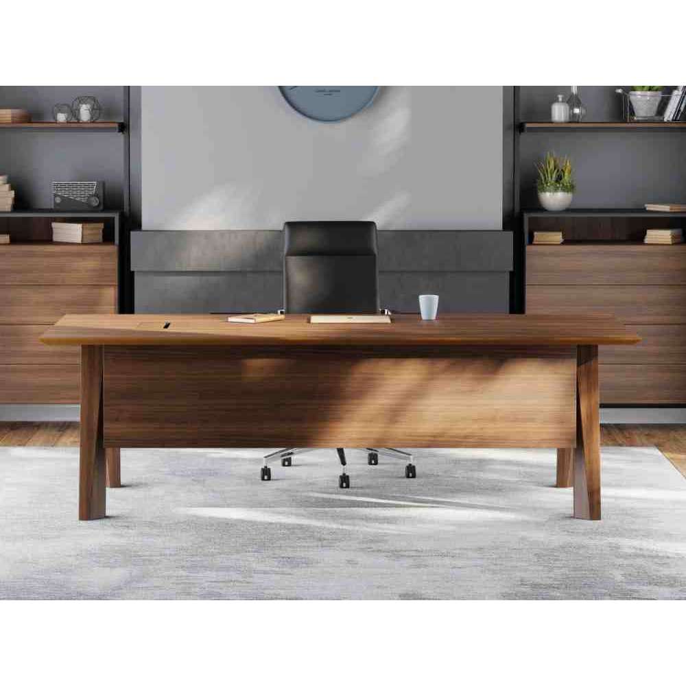 Prostokątne drewniane biurko gabinetowe z systemem prowadzenia kabli