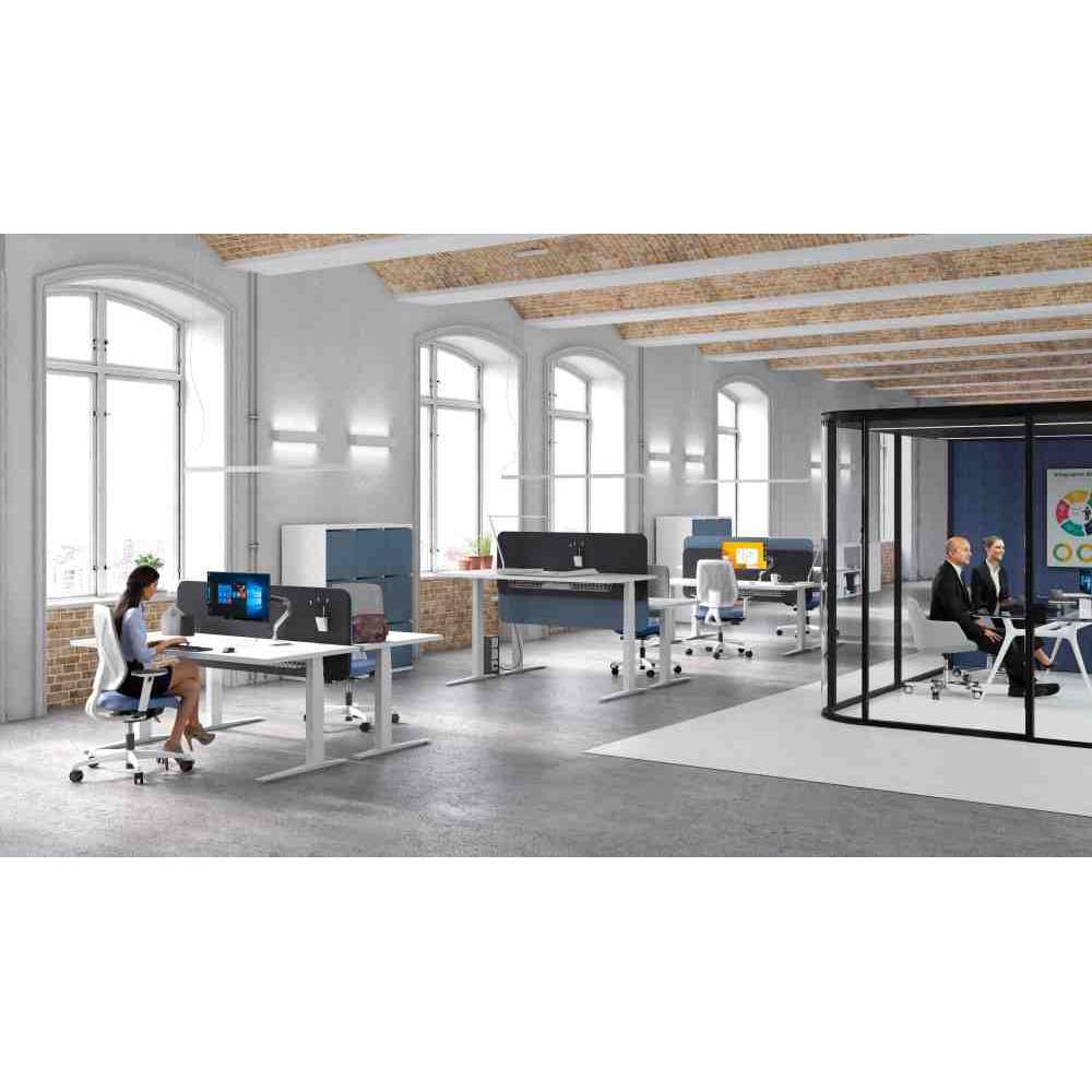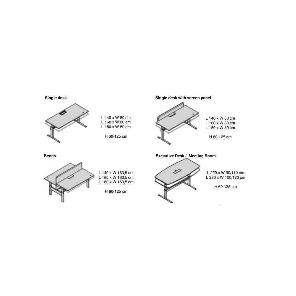 System biurka Evo HP składa się z niezbędnej aluminiowej konstrukcji rurowej ze zintegrowanym elektrycznym systemem podnoszenia. Za pomocą prostego kliknięcia blat można podnieść z 60 do 125 cm od poziomu podłogi, co pozwala na zmianę z pozycji siedzącej na stojącą podczas pracy. Przycisk sterujący jest zintegrowany z blatem, a system posiada funkcję bezpieczeństwa, która zapobiega obrażeniom. Wersja ławkowa z ekranami dźwiękochłonnymi tapicerowanymi tkaniną, zapewnia maksymalną prywatność. Evo HP można zintegrować z szeroką gamą akcesoriów, takich jak dostęp od góry, listwy akcesoriów, ramiona monitora, uchwyty na procesor, panele ekranowe, tablice, uchwyty na kable, korytka kablowe, termoformowane korytka na kable i wtyczki z funkcją panelu dolnego.