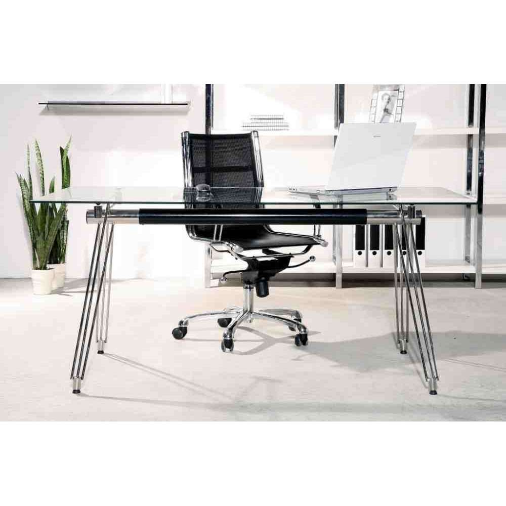 Eleganckie biurko w nowoczesnym designie – To biurko zachwyca swoim stylowym wyglądem. Jego elegancka rama wykonana z chromowanych rur stalowych nadaje Officia bardzo nowoczesny wygląd, a solidny blat z przezroczystego szkła o grubości 8 mm sprawia wrażenie przejrzystego i przewiewnego. Niezależnie od tego, czy w gabinecie, czy w biurze, to biurko będzie wyglądać stylowo w dowolnym miejscu, zamieniając pracę w zabawę! Oferujemy również dopasowane krzesła biurowe.