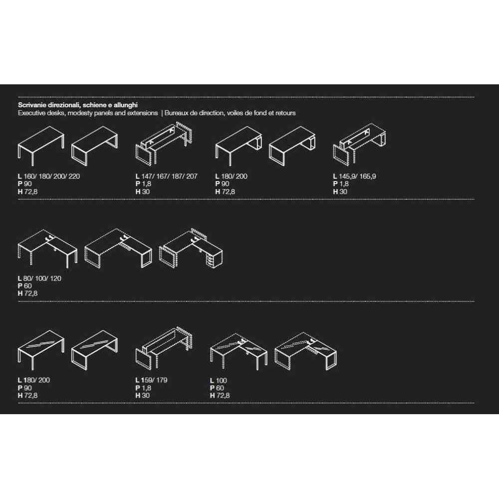 Lakierowane z tyłu szklane blaty nadają biurku i stołowi konferencyjnemu wielką elegancję. Jasność szklanego blatu idealnie komponuje się z jasnością chromowanej struktury. Dodatkowy poziom materiałów i kombinacji dla nowoczesnego i eleganckiego executive.