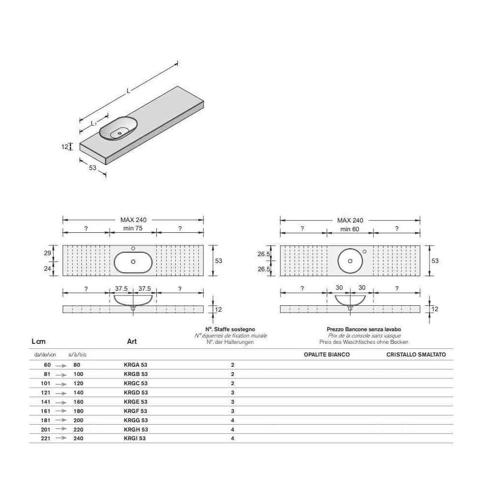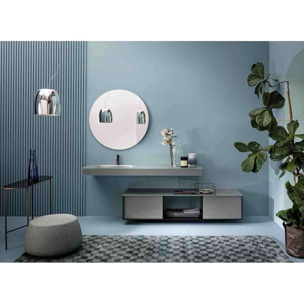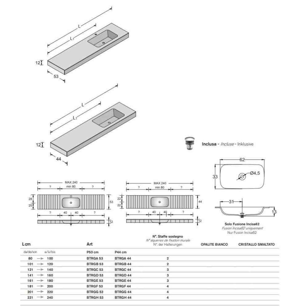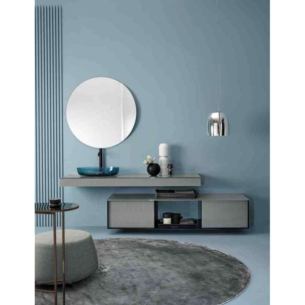 Regolo Colors - Blat lub blat umywalki ze stalową ramą pokrytą emaliowanym szkłem błyszczącym lub jedwabnym, lustro, laminat, flety, kod kreskowy, Inciso. Łączenie elementów górnych/krawędziowych pod kątem 90°. Pokrycie ramy można wymienić. Dostępna opcja dwukolorowa.