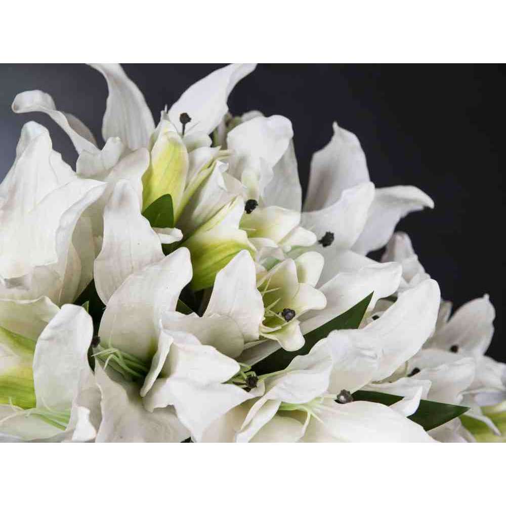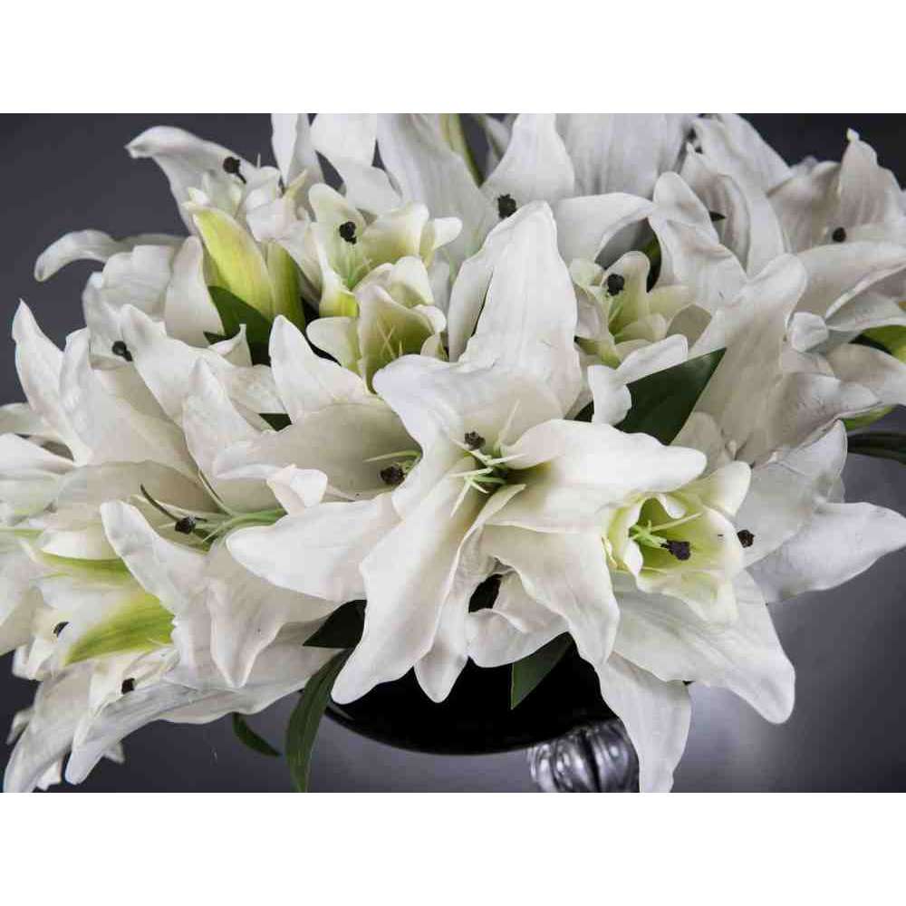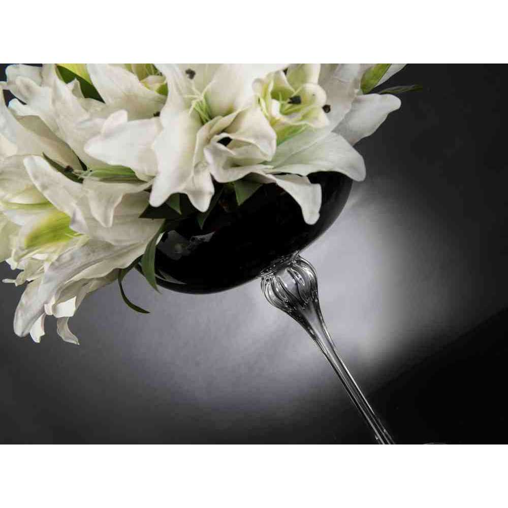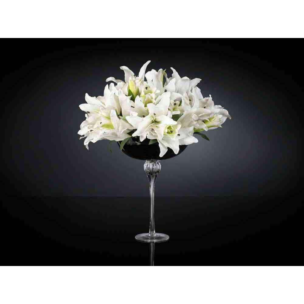 AURATUM to sztuczna kompozycja kwiatowa w czarnym szklanym wazonie ze sztucznymi kwiatami i „wodną iluzją”, stworzona przez naszych florystów. Idealny do wystroju wnętrz lub oprawy wesel i imprez.