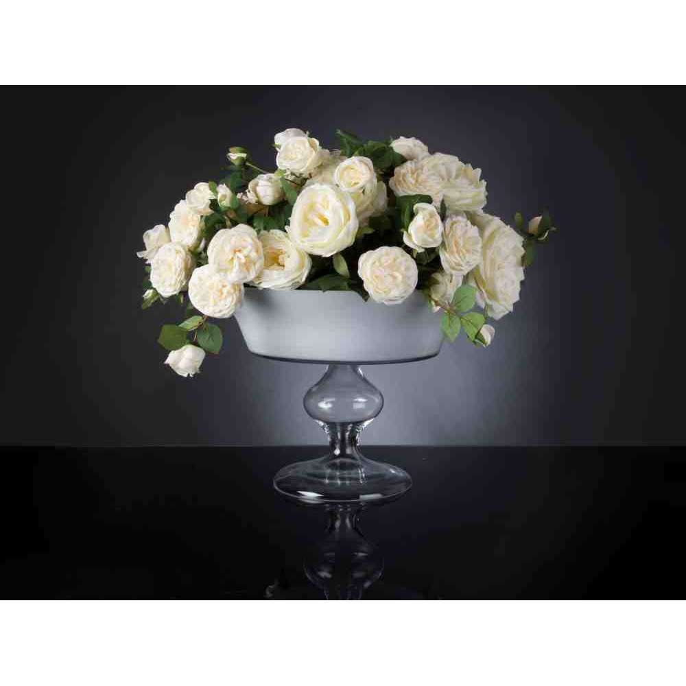 CAMILLA ROSES to kompozycja sztucznych kwiatów w przezroczystym szklanym wazonie ze sztucznymi kwiatami, stworzona przez florystów.