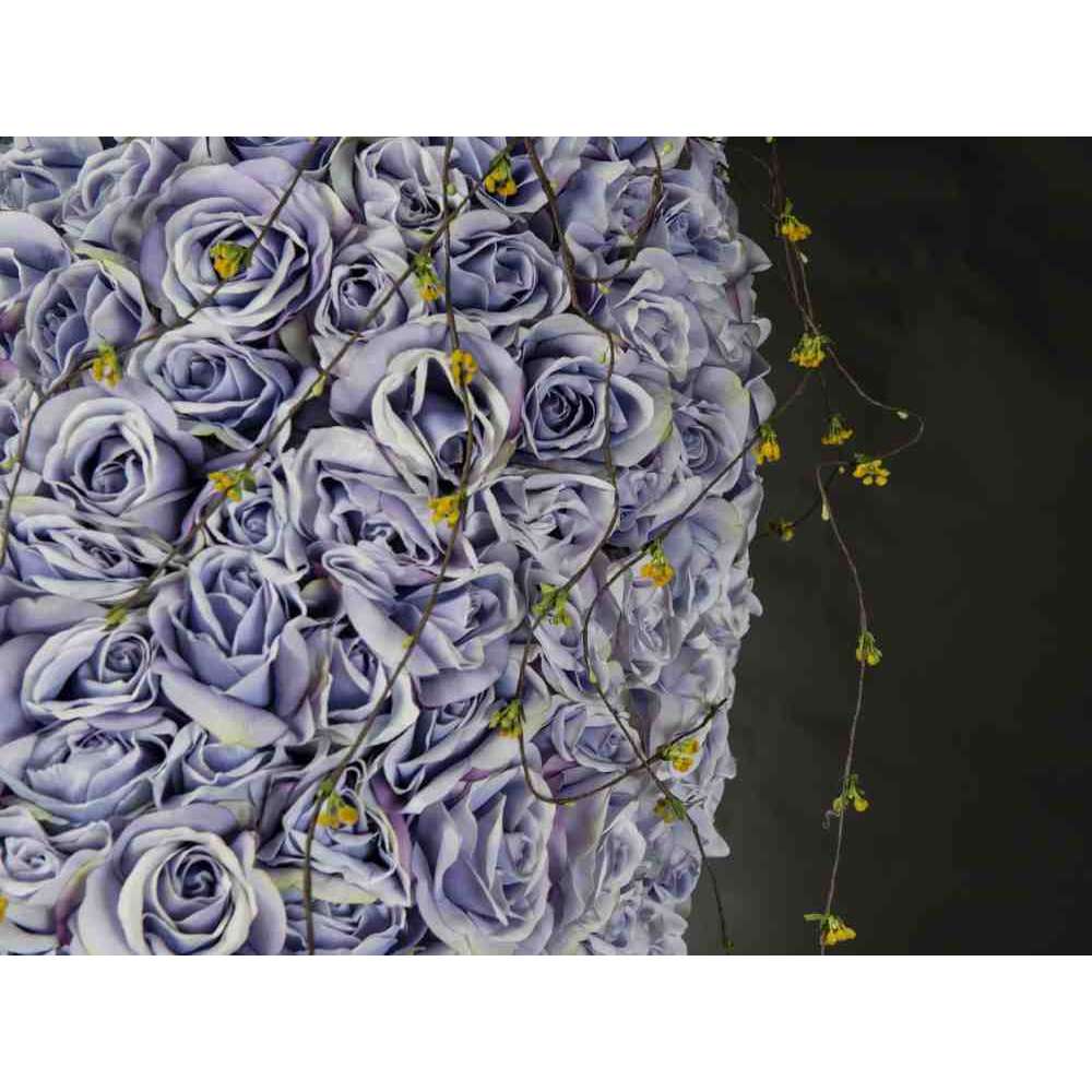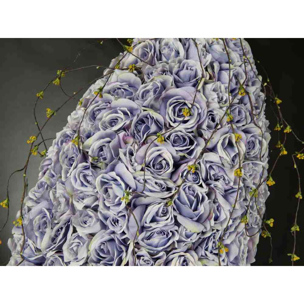 DROP ROSES WEEPING to sztuczna kompozycja kwiatowa w przezroczystym szklanym stojaku ze sztucznymi kwiatami, stworzona przez naszych florystów. Idealny do wystroju wnętrz lub oprawy wesel i imprez.