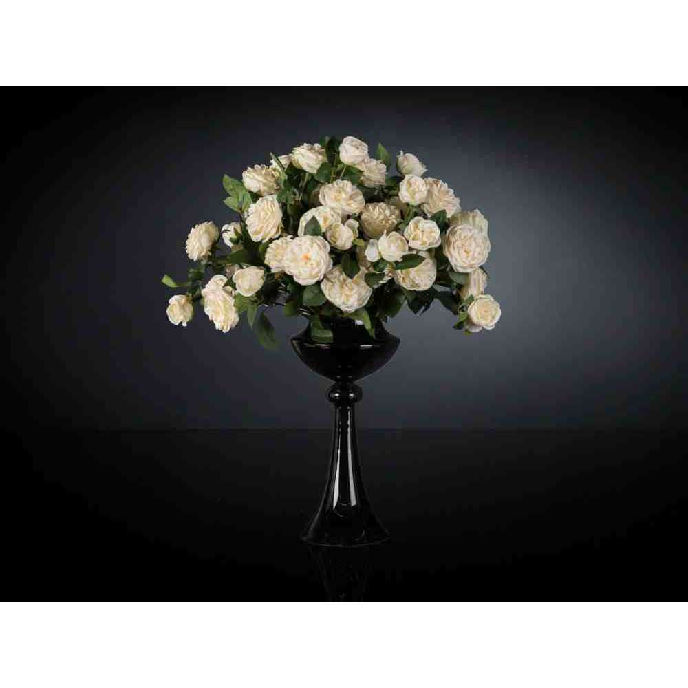 ERACLE BOUQUET to sztuczna kompozycja kwiatowa w czarnym szklanym wazonie ze sztucznymi kwiatami i „wodną iluzją”, stworzona przez naszych florystów. Idealny do wystroju wnętrz lub oprawy wesel i imprez.