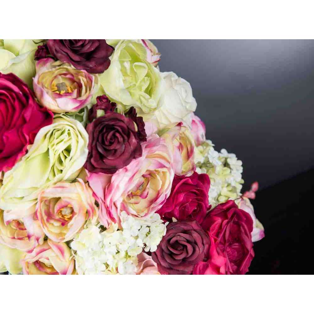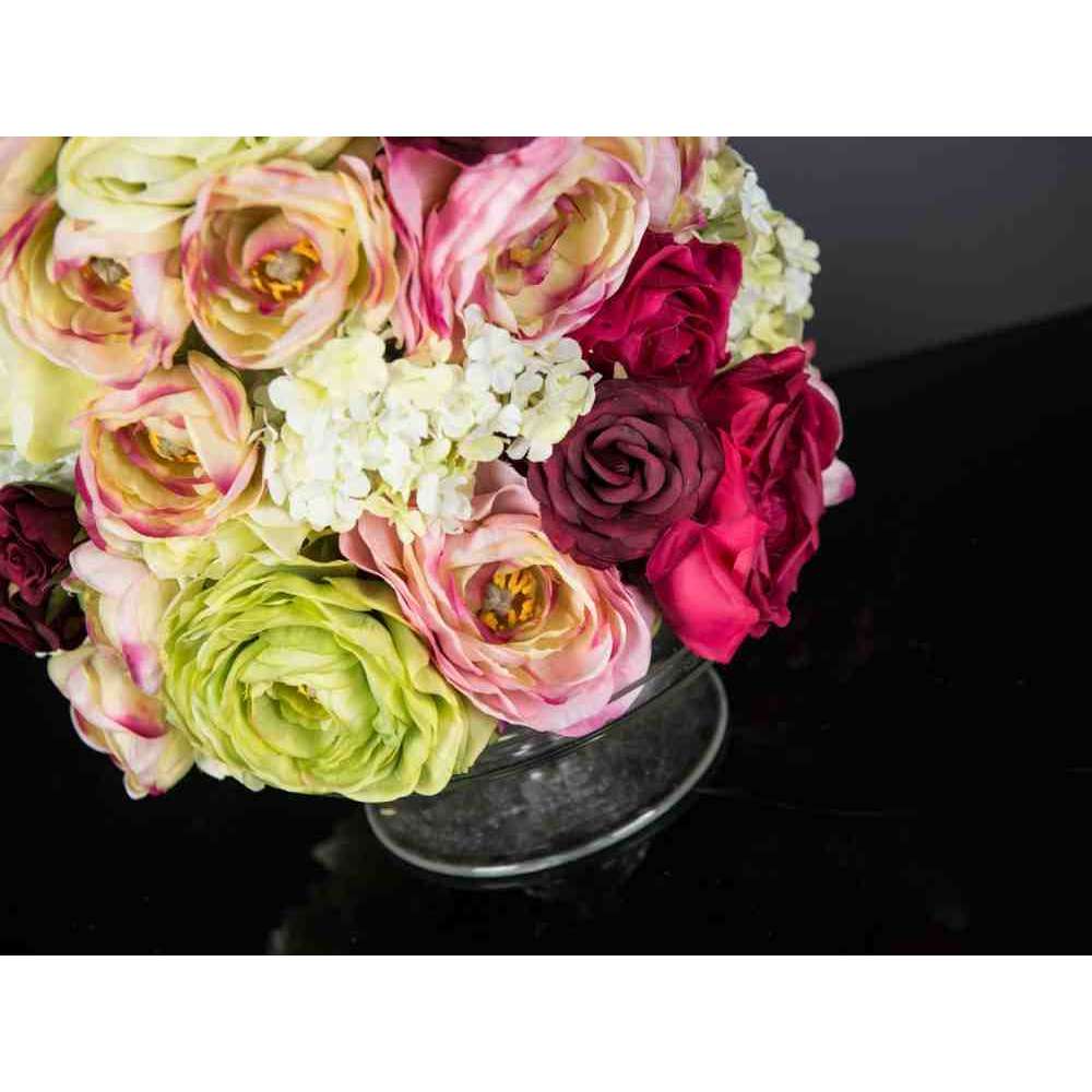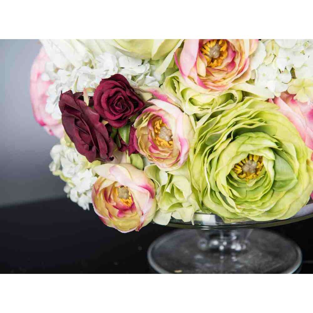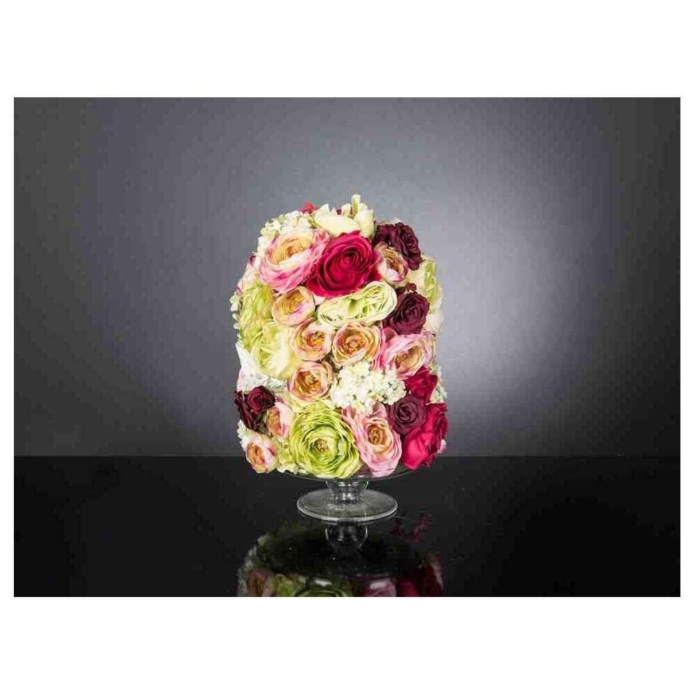 OSAKA to sztuczna kompozycja kwiatowa w przezroczystym szklanym stojaku z różnymi sztucznymi kwiatami i „wodną iluzją”, stworzoną przez naszych florystów. Idealny do wystroju wnętrz lub oprawy wesel i imprez.
