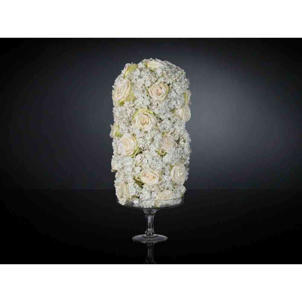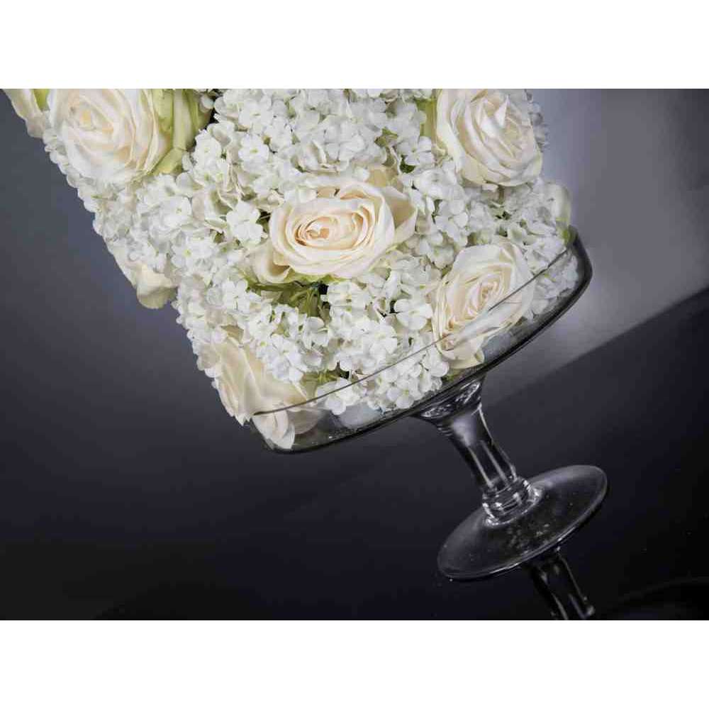 ROSES to sztuczna kompozycja kwiatowa w przezroczystym szklanym stojaku ze sztucznymi kwiatami i „wodną iluzją”, stworzoną przez naszych florystów. Idealny do wystroju wnętrz lub oprawy wesel i imprez.