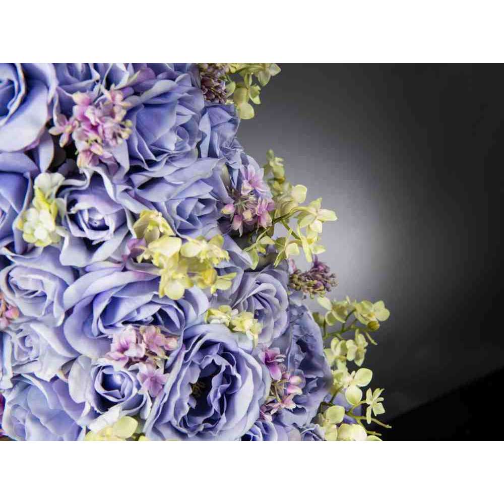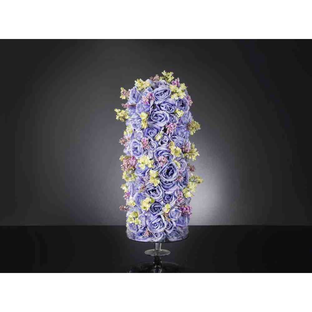 STAND CYLINDER ROSES to sztuczna kompozycja kwiatowa w przezroczystym szklanym stojaku ze sztucznymi różami, stworzona przez naszych florystów. Idealny do wystroju wnętrz lub oprawy wesel i imprez.