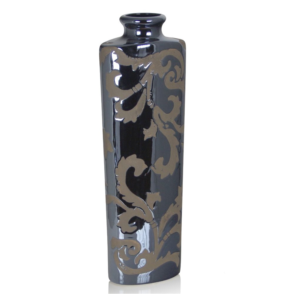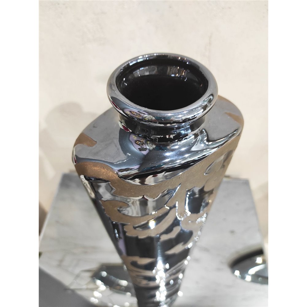 Wysoki lustrzany wazon w szarym połyskującym wykończeniu w gałązki 40 cm