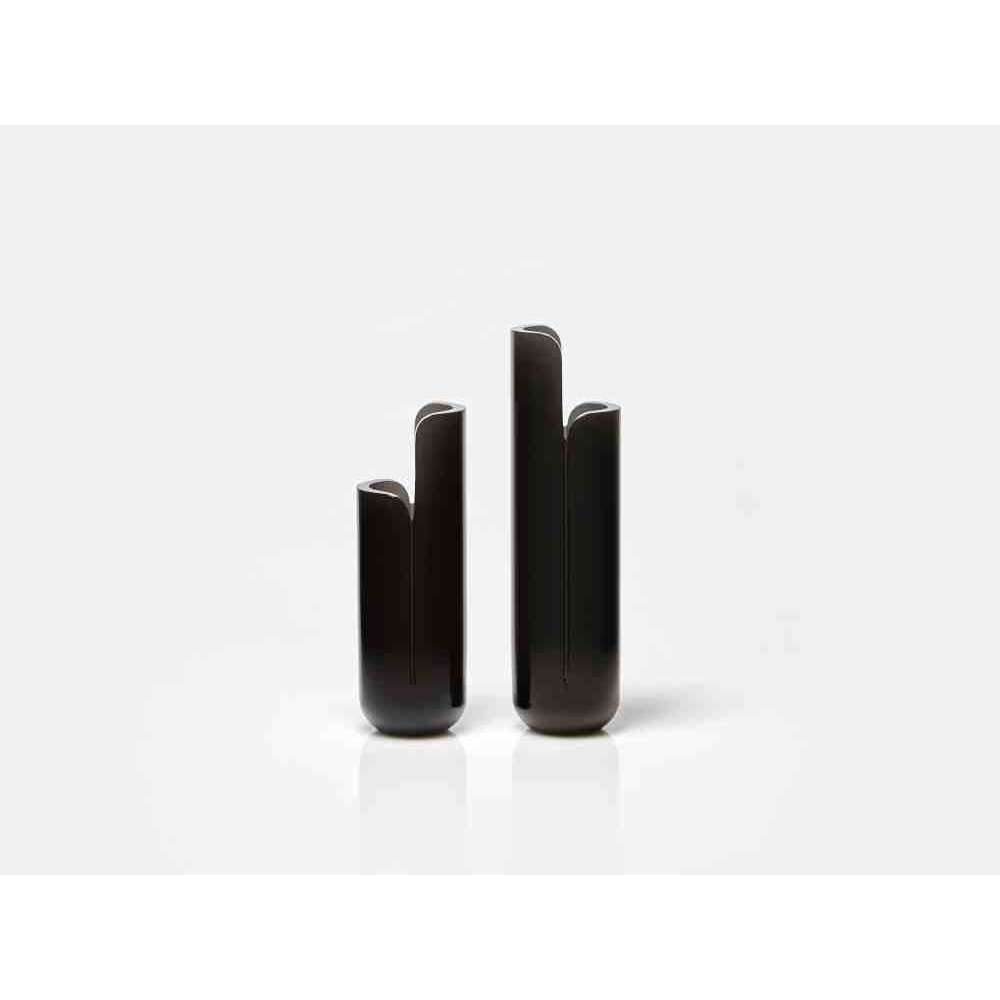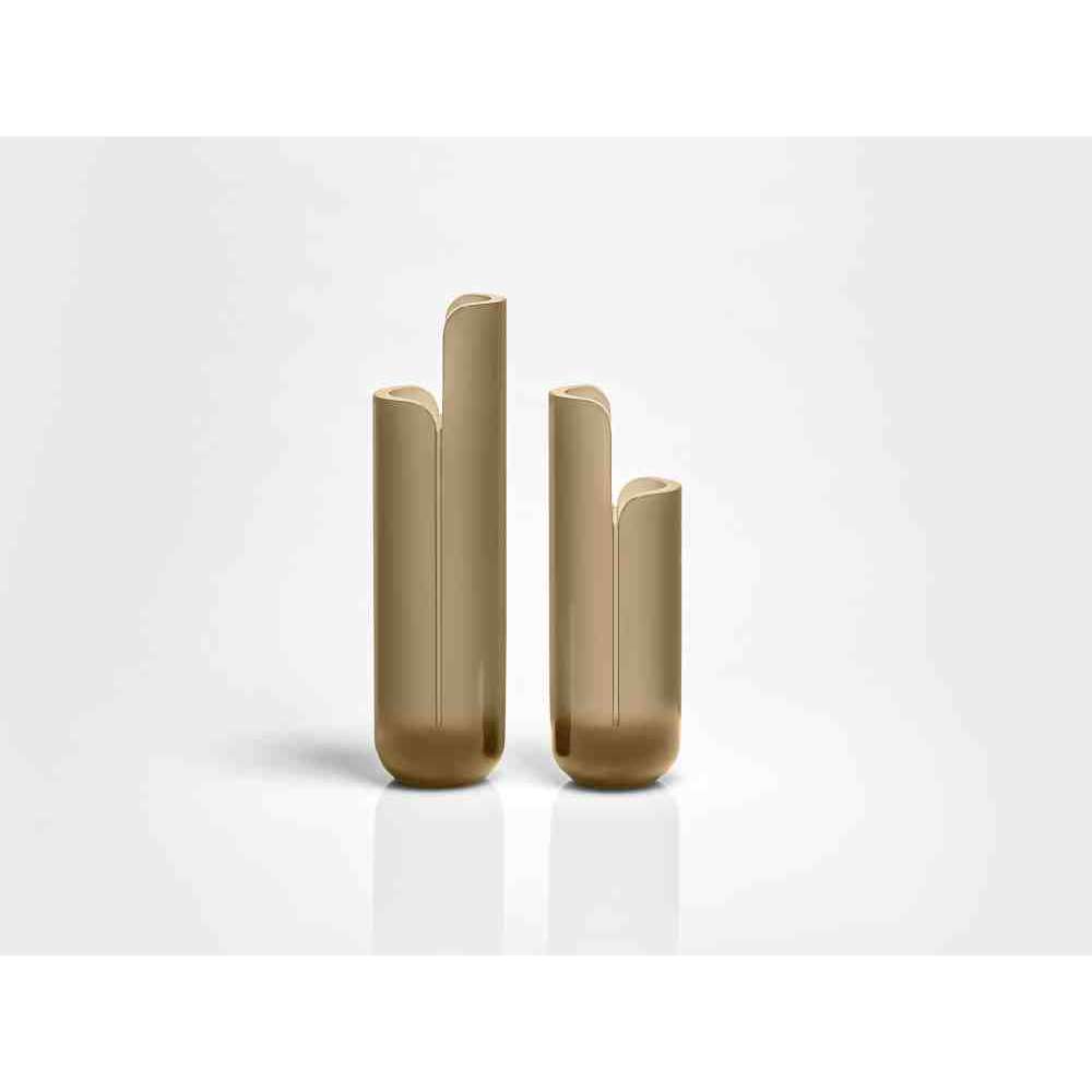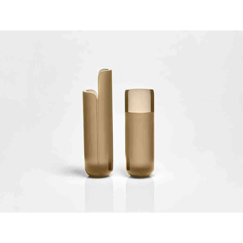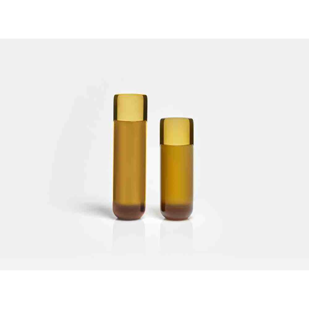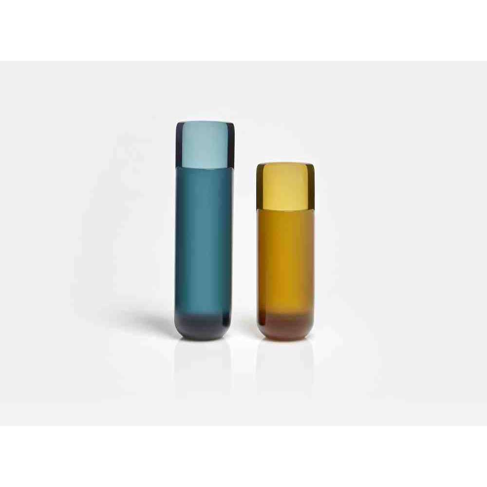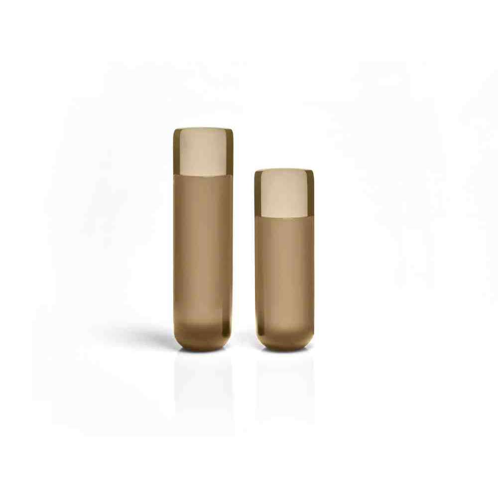 o różnych wysokościach i średnicach zwęża się u góry tak, aby zdefiniować krawędź, górną koronę, która rozjaśnia obraz i zachęca oko do zbieżności w kierunku zawartości wazonu. W serii NISI integruje się z kształtem stożka bez przerwy, aby otworzyć i pomieścić wspaniały bukiet kwiatów. Wreszcie w serii MASA głębokie cięcie, wyraźny znak oddziela, ale jednocześnie łączy dwie połowy objętości, która rozwija się na wysokość, osiągając różne wysokości, nadając wazonowi niezwykły wygląd.