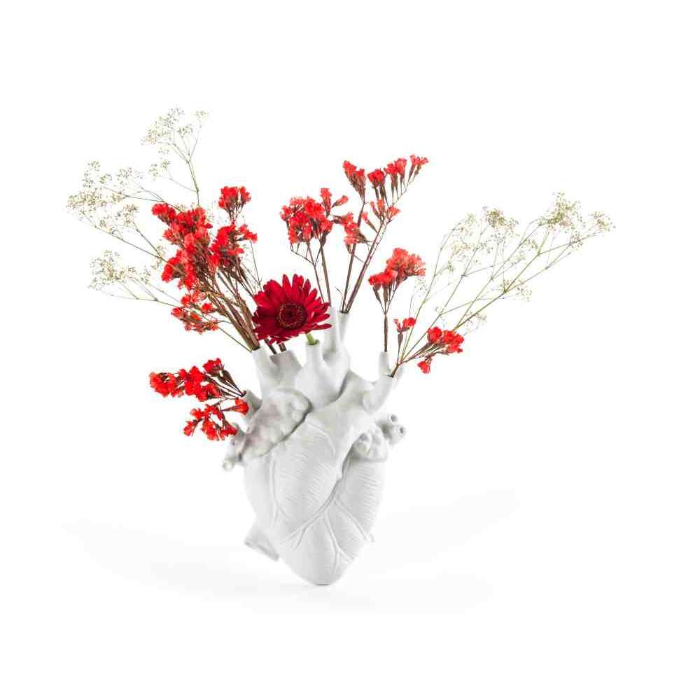 Miłość w rozkwicie to wazon w kształcie serca, który wygląda, jakby pochodził z eseju o ludzkiej anatomii. Nowoczesna miłość przełożona na romantyczny, ale nieprzewidywalny prezent.