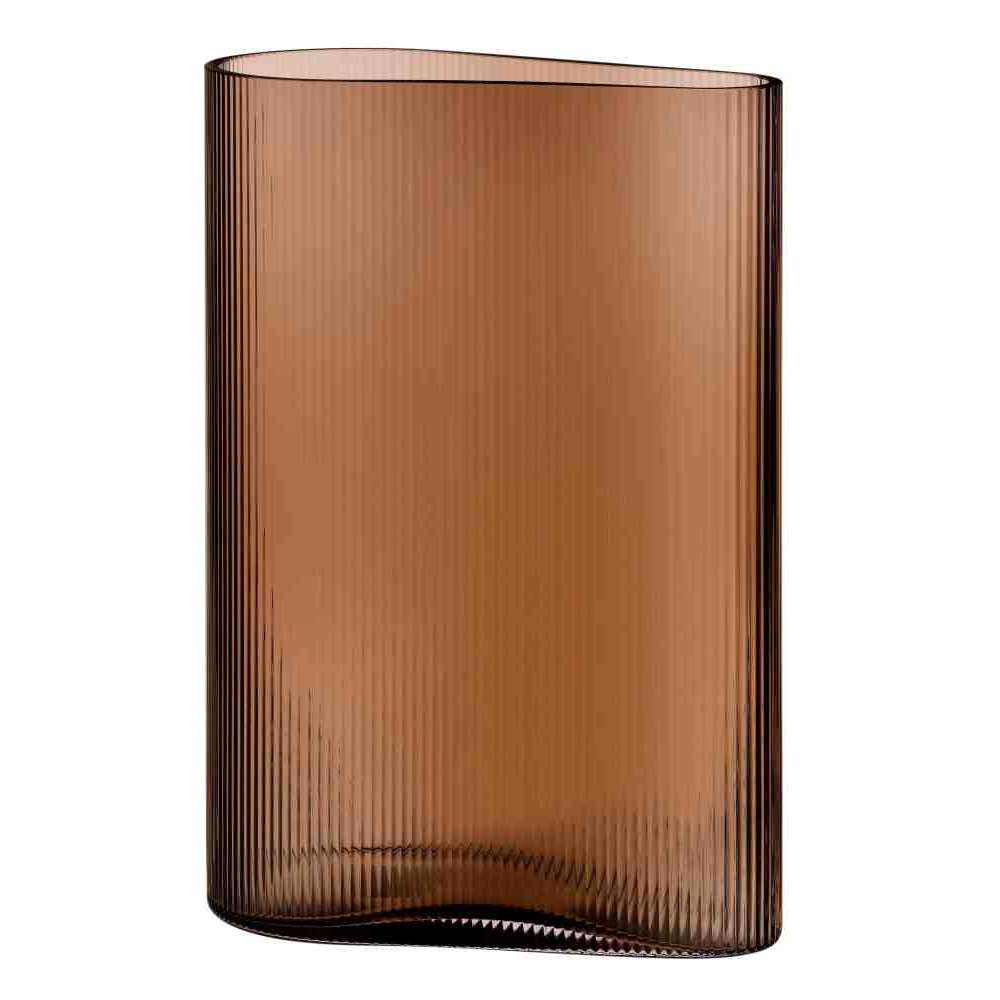Od projektanta Tamera Nakisçi to trio wazonów wykonanych z niezwykle przejrzystego, ale falistego szkła. Efekt falowania tworzy iluzję optyczną, w niemal magiczny sposób odzwierciedlając różne kolory zawartości. Szczególnie pięknie prezentują się w tych wazonach kwiaty. Jednak szersze wersje nadają się również do przechowywania gazet, książek lub czasopism.