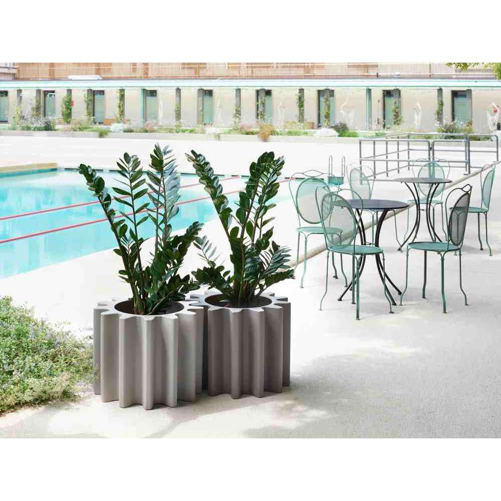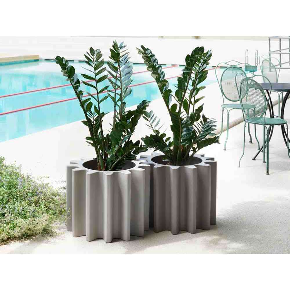 Gear Pot jest inspirowany typowym kształtem przekładni mechanicznej. Jest modułowy: wiele Gear Pots można umieścić jeden na drugim lub obok siebie, zazębiając się jak prawdziwy sprzęt, aby tworzyć zabawne i kolorowe kompozycje, zmieniając każdą przestrzeń w wyjątkową oprawę. Gear Pot nadaje się do wszystkich rodzajów przestrzeni domowych i ozdabia otoczenie.