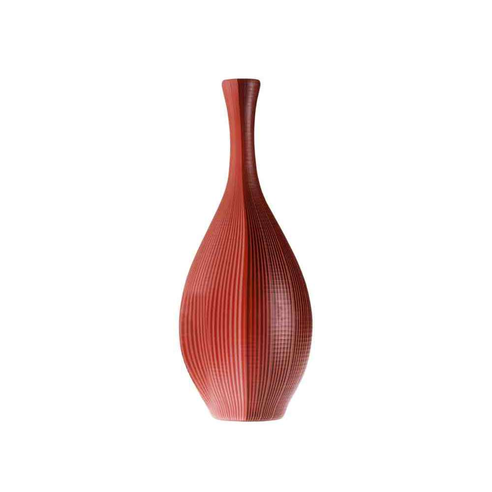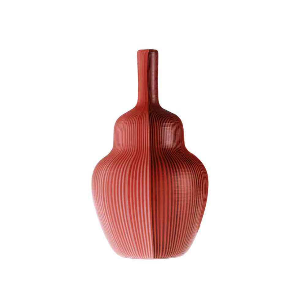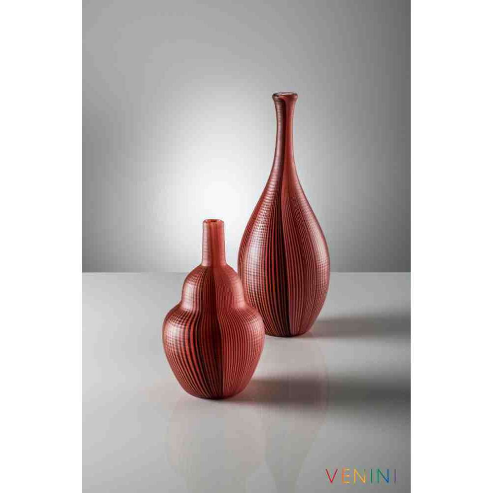 Tessuti Battuti to szklany wazon z plecionej trzciny. Naprzemiennie jasne i ciemne linie na odcieniach Coral, harmonijnie zgodnie z wytycznymi opracowanymi przez Carlo Scarpa. I odtworzone przez mistrzów dmuchania szkła VENINI przy użyciu umiejętnej techniki „Canne” i wreszcie szlifowania szkła: dwie naprawdę wyjątkowe kreacje.
