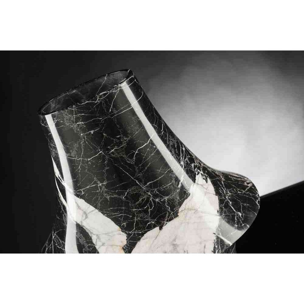 Eccentrico Small to nowoczesny wazon dekoracyjny z marmuru Grand Antique, drogocennej odmiany czarno-białego marmuru francuskiego, powstałego w wyniku obróbki kamieni naturalnych za pomocą 5-osiowych pantografów, które umożliwiają uzyskanie bardziej złożonych kształty niż proste objętości obrotowe. Ten nowoczesny przedmiot dekoracyjny jest częścią UnNatural Collection, kolekcji zaprojektowanej przez Giorgio Ragazziniego dla VG, powstałej w wyniku badania zjawisk naturalnych i interakcji materiałów z ludzką technologią.
