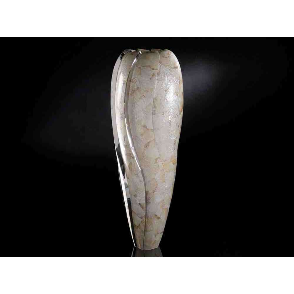 OBICE WIR KABIBE | Wysoki dekoracyjny wazon z żywicy z wykończeniem muszli i stalowymi detalami.