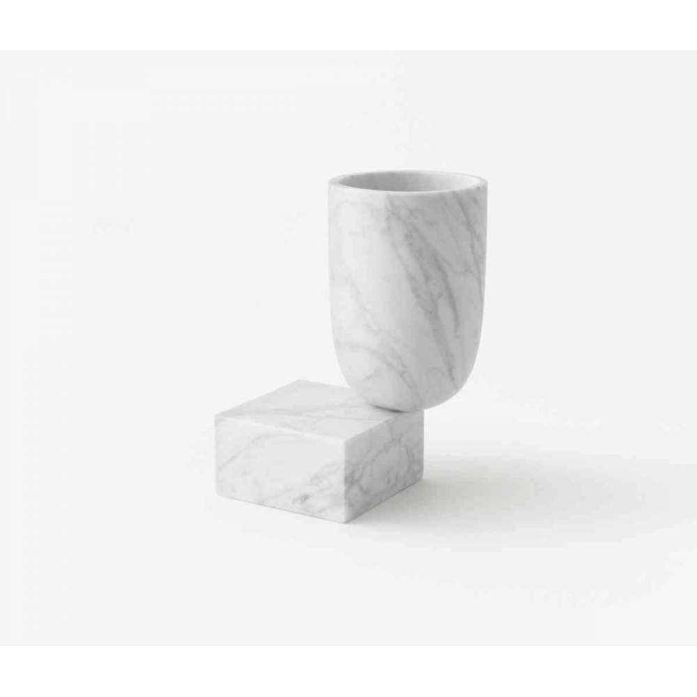 Wazon z białego marmuru Carrara, dostępny również z czarnego marmuru Marquina, matowe polerowane wykończenie, cm dł. 17 x szer. 17 x wys. 23,6