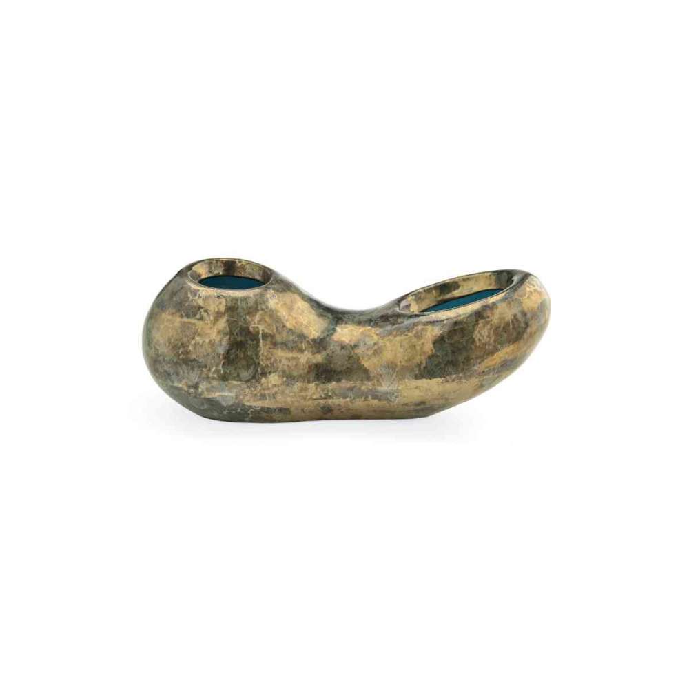 Jako przypomnienie geologicznych kształtów jamy skalnej, wazon Liconchi wyraża analogię poprzez dwukolorową glazurę, która podkreśla wnętrze. Jest całkowicie ręcznie. Wymiary: wys.18x49x20 cm