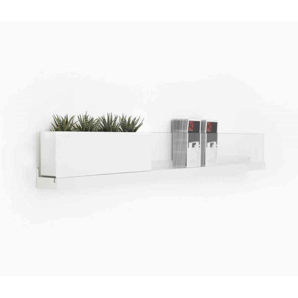 Roślina przednia (2009). Szklana donica o długości 500 mm z przezroczystego lub białego szkła jest używana razem z półką ekspozycyjną o głębokości 98 mm do montażu na ścianie. Witryna z litego drewna w kolorze dąb, brzoza, kolory standardowe, wybarwienie standardowe na dąb lub biały szkliwiony. Wykończenie bezbarwnym lakierem. Użyj rośliny Front do dekoracji kwiatowych na ścianie lub jako podstawę do wszelkiego rodzaju innych dekoracyjnych ekspozycji. Front został zaprezentowany w 2004 roku jako prosta prosta listwa magazynowa wkręcana w ścianę.