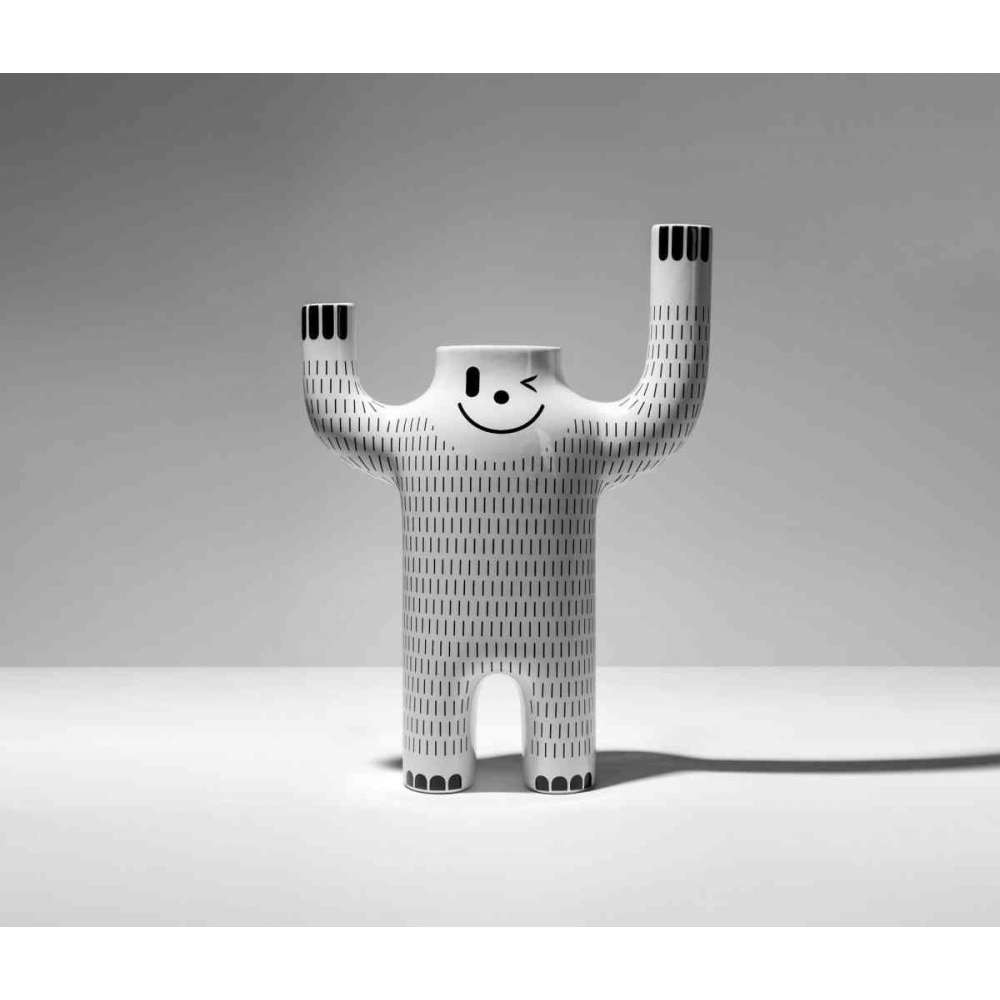 Wazon ceramiczny szkliwiony w kolorze białym z dekoracją w kolorze czarnym